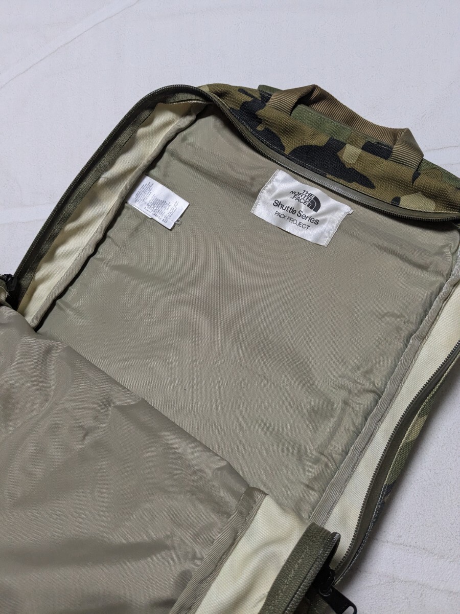 ノースフェイスのカモ柄 シャトルデイパックです。