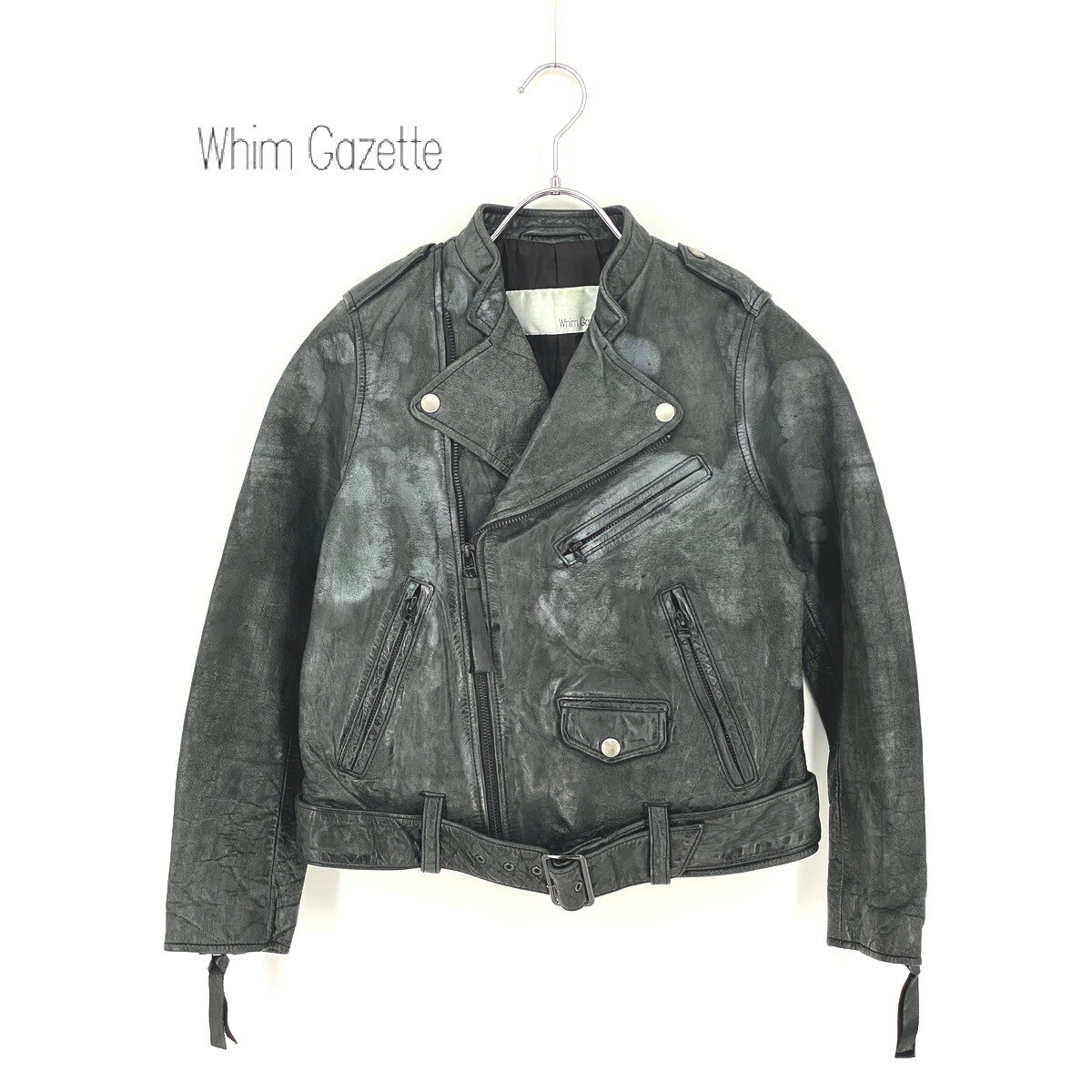 B0873/訳あり Whim Gazette ウィム ガゼット 牛革 本革 カウハイド ジップアップ ダブルライダース ブルゾン ジャケット F 黒 レディース