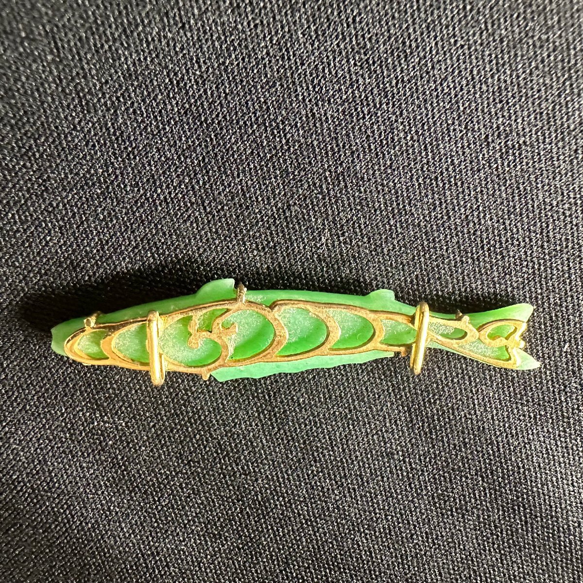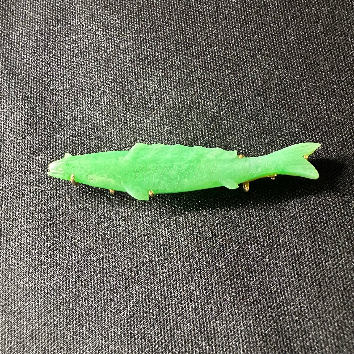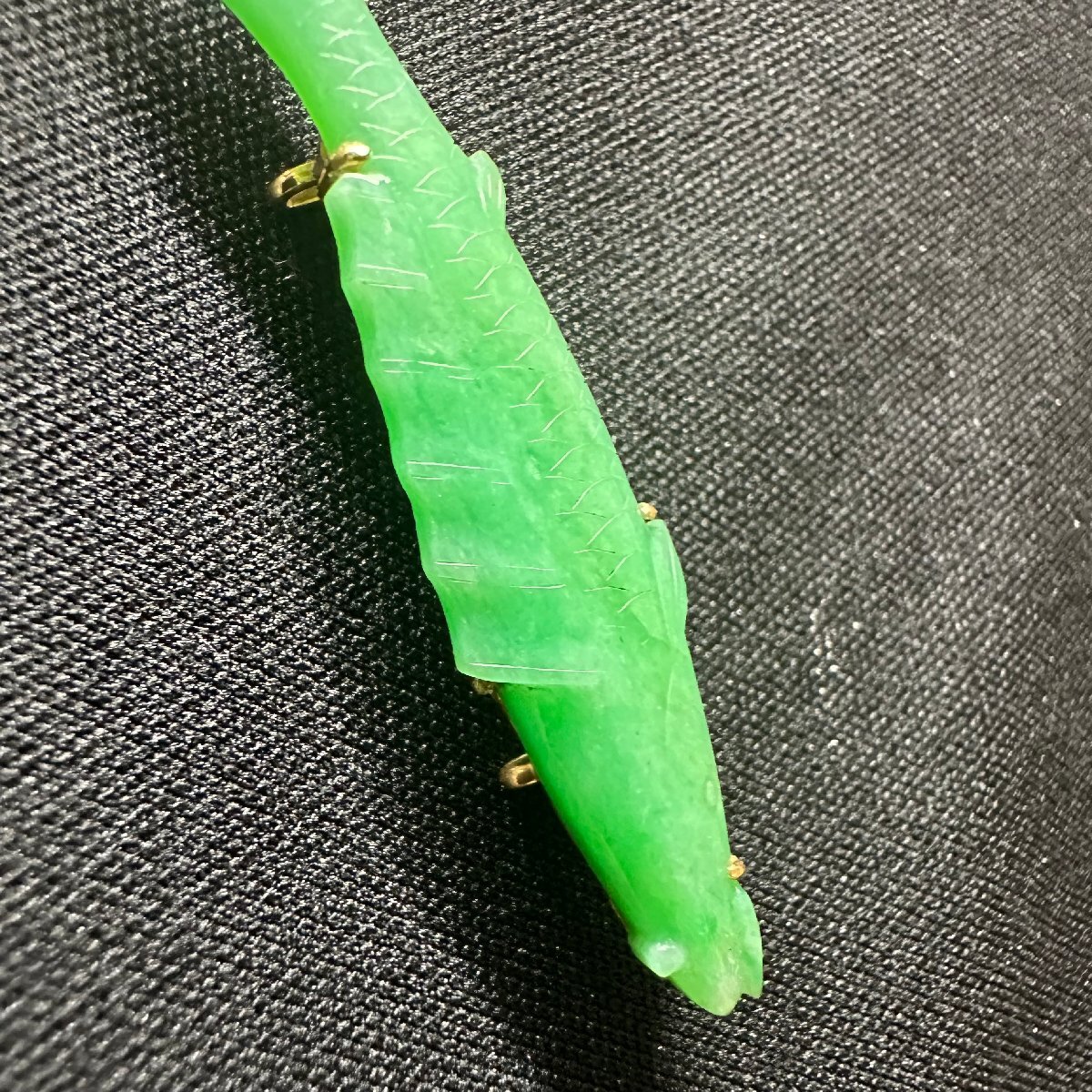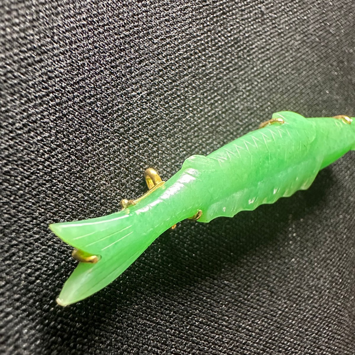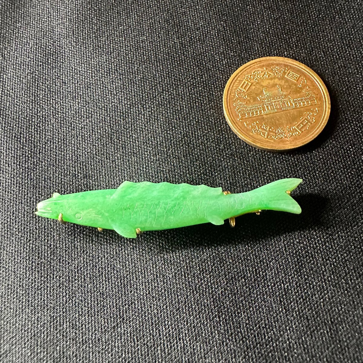 q5881 翡翠 帯留め 鯉?魚モチーフ 女性和服 着物 和装小物 アクセサリー小物