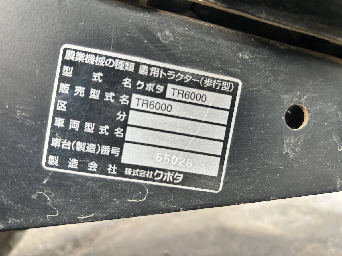 埼玉発 売切 クボタ ミニ耕うん機 管理機 TR6000 程度良好