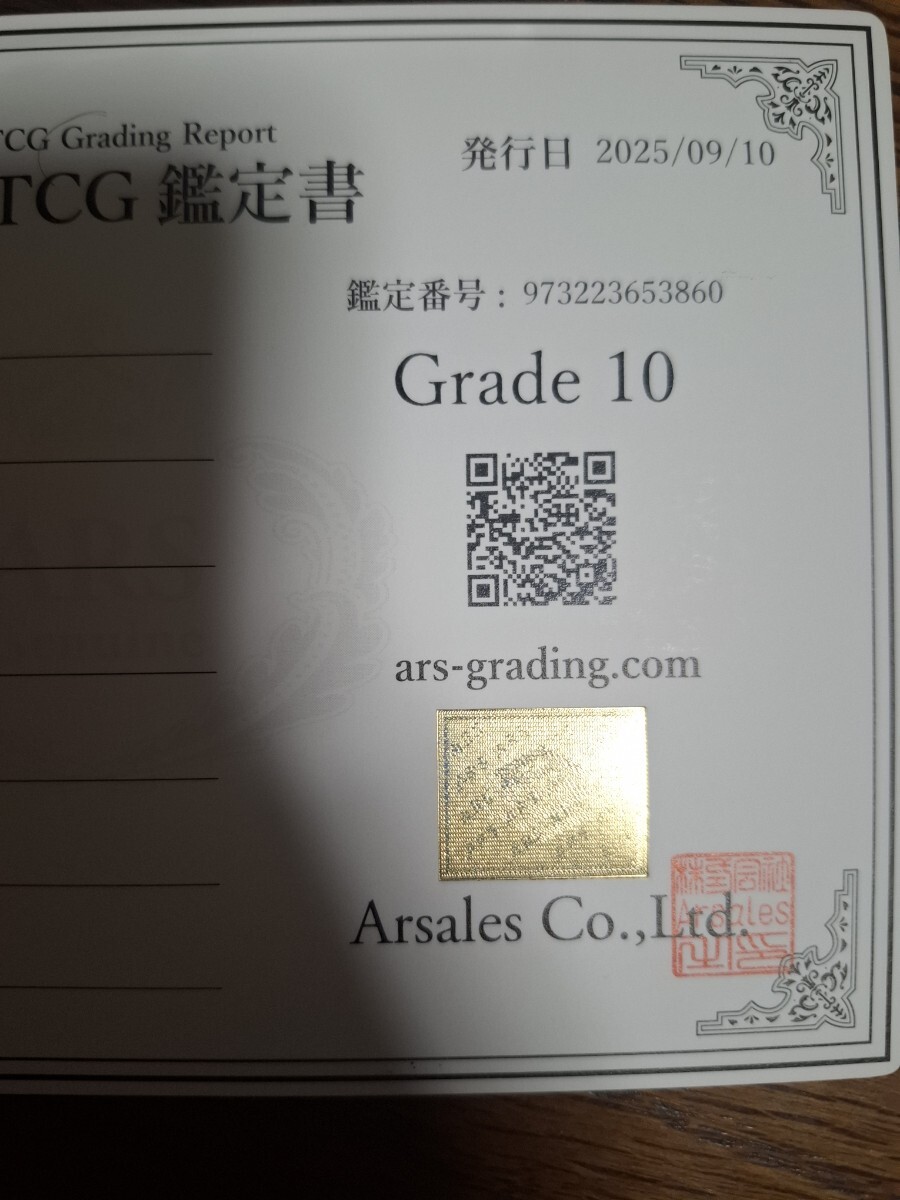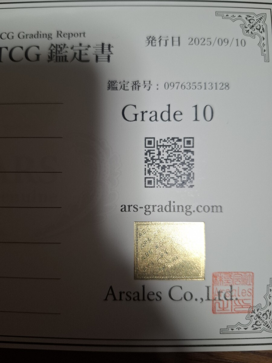 ARS10鑑定書付きでPSA10にも劣らない評価だと思います