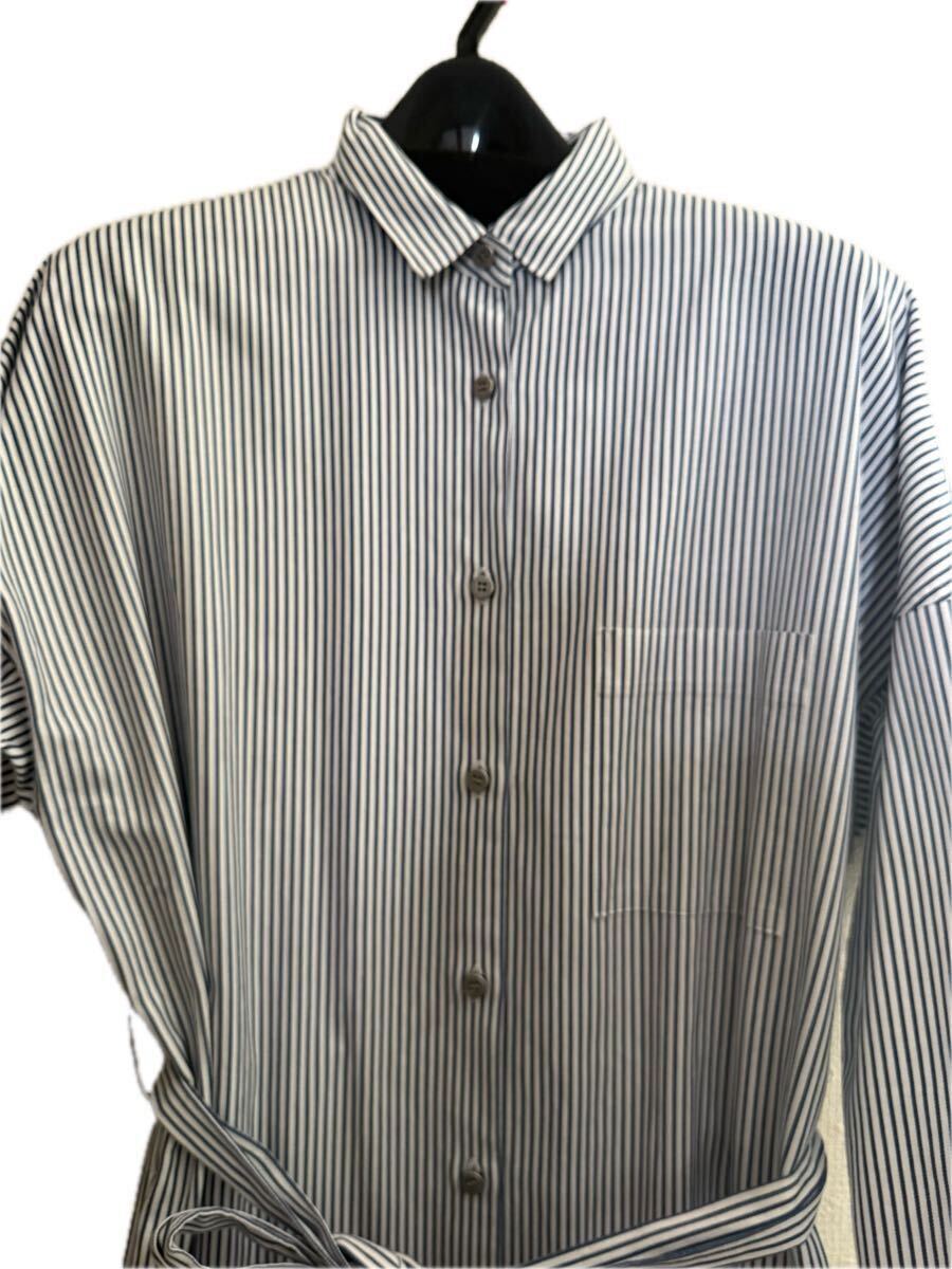 当方は身長160cm普通体型ですが床にギリギリ付かない位の長さです。ゆったりサイズです。シャツワンピースとしてはもちろん、上からニットやスエット、パーカーの着用も良さそうです。フロント全面ボタンを開けて羽織としても使用できます。ウエストの紐は取り外し可能です。アッパーハイツのシャツなのでしっかりしており薄いデニムの様な素材です。