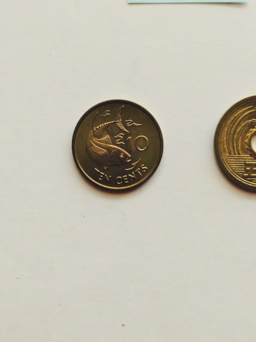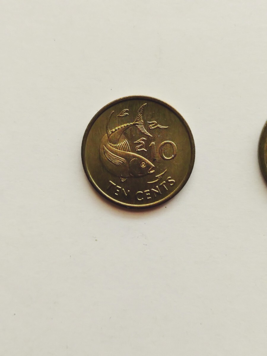 外国コイン  セーシェル (Tー419) 魚 (マグロ)10セント硬貨 1997年