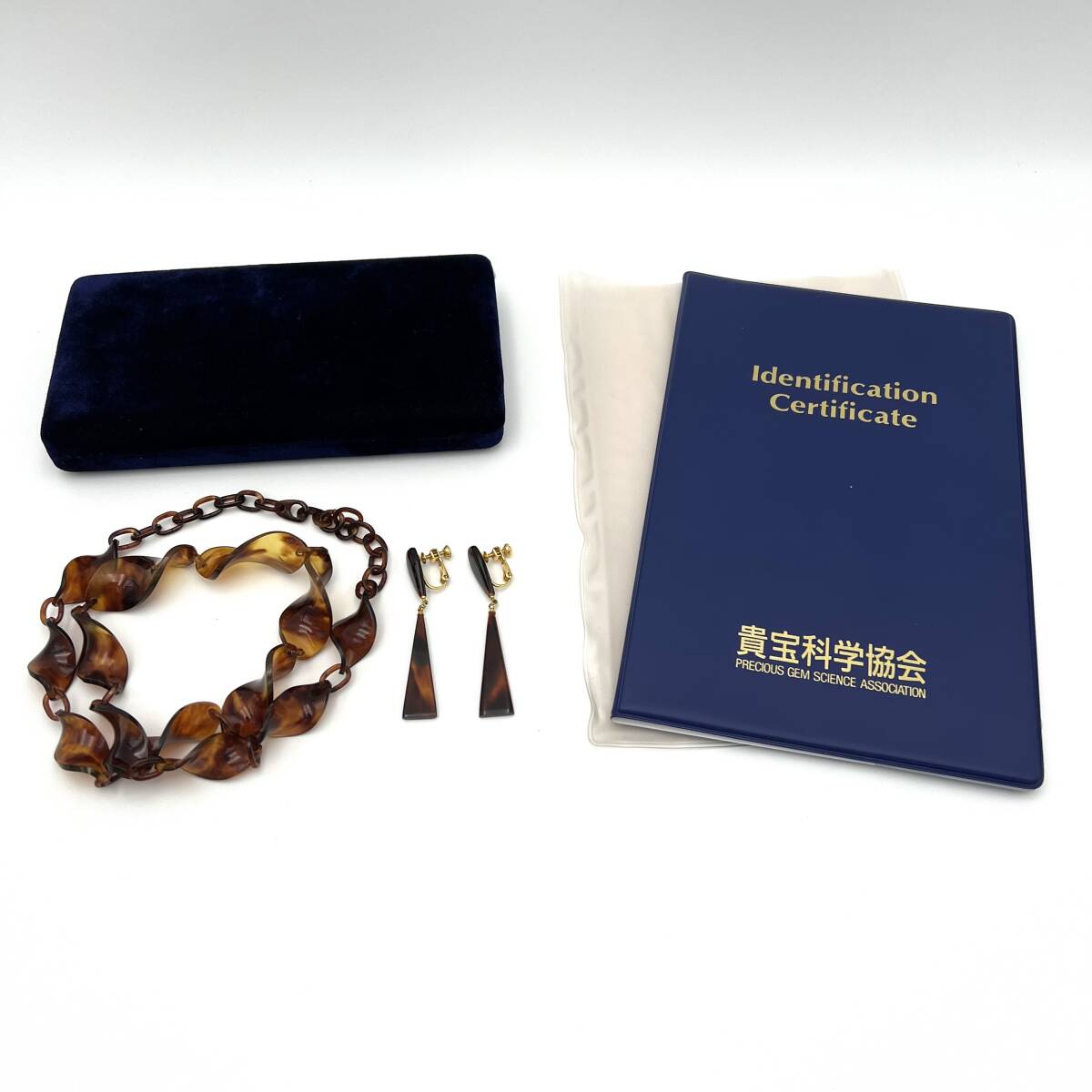 べっ甲 ネックレス イヤリング セット 箱 ファンシーカット 貴宝科学協会 宝石鑑別所 総重量25.4g 鼈甲 [25974] | ||||