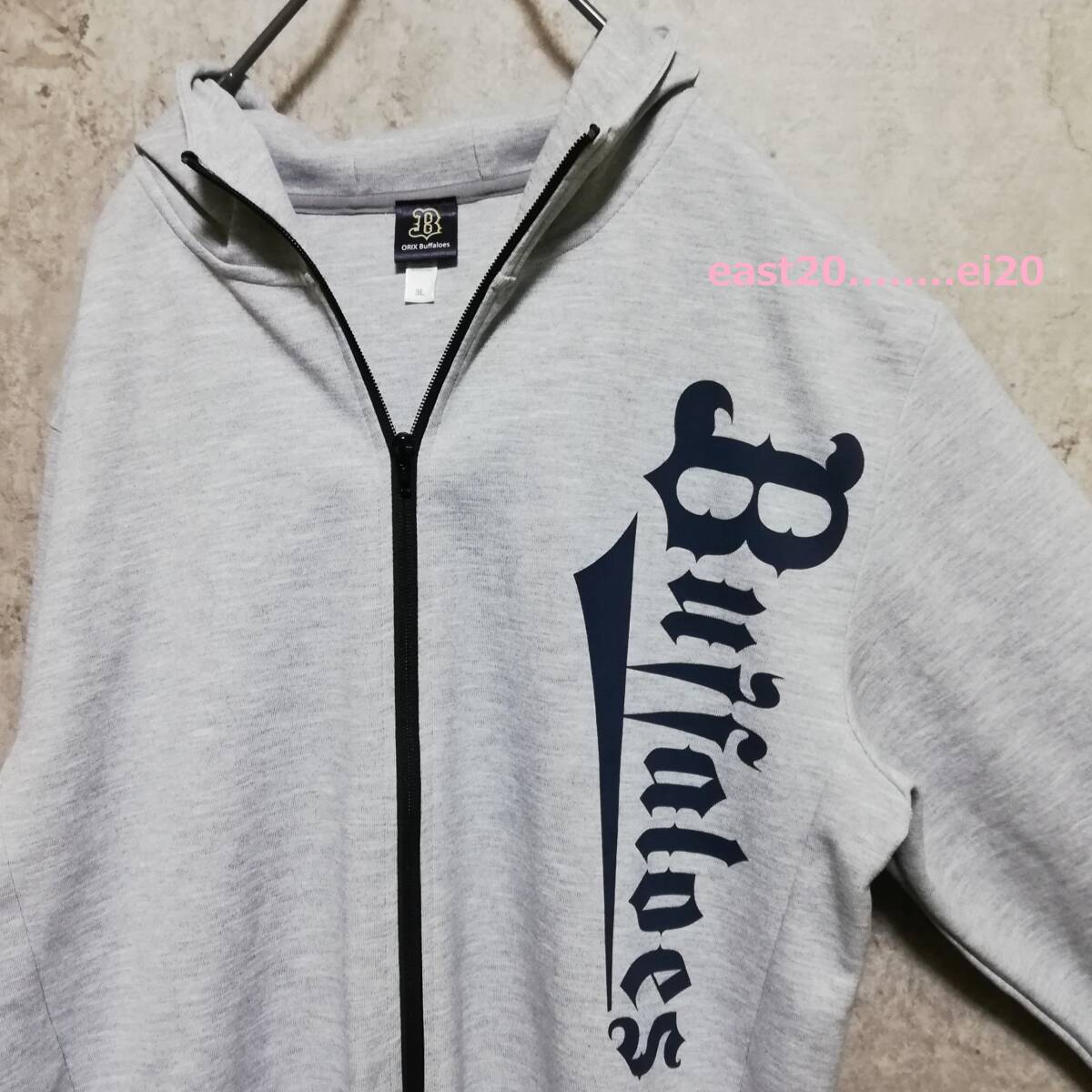 3L size ORIX Buffaloes オリックス バファローズ フロント ビッグ ロゴ メンズ ジップ フーディ パーカー グレー プロ野球 NPB 送料無料