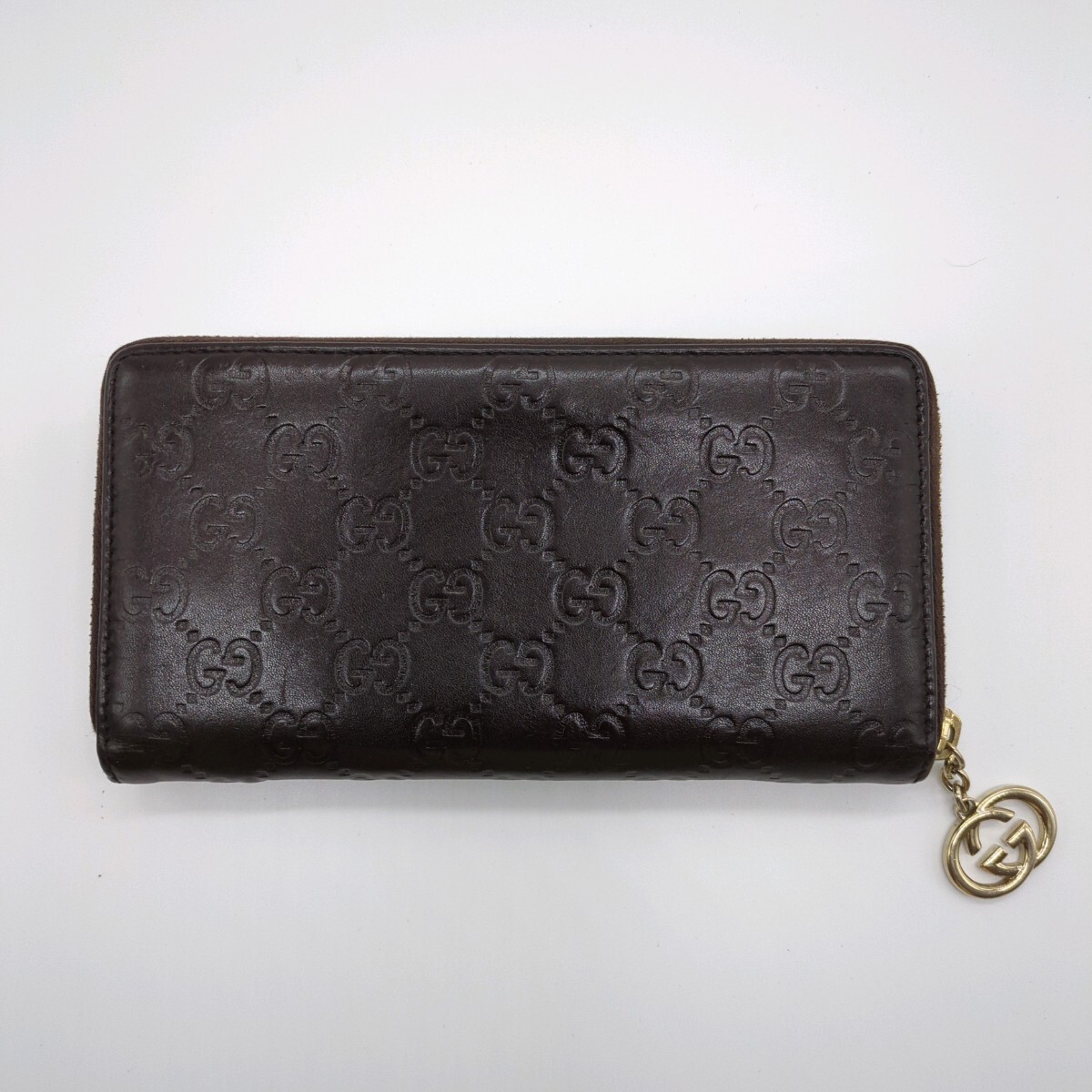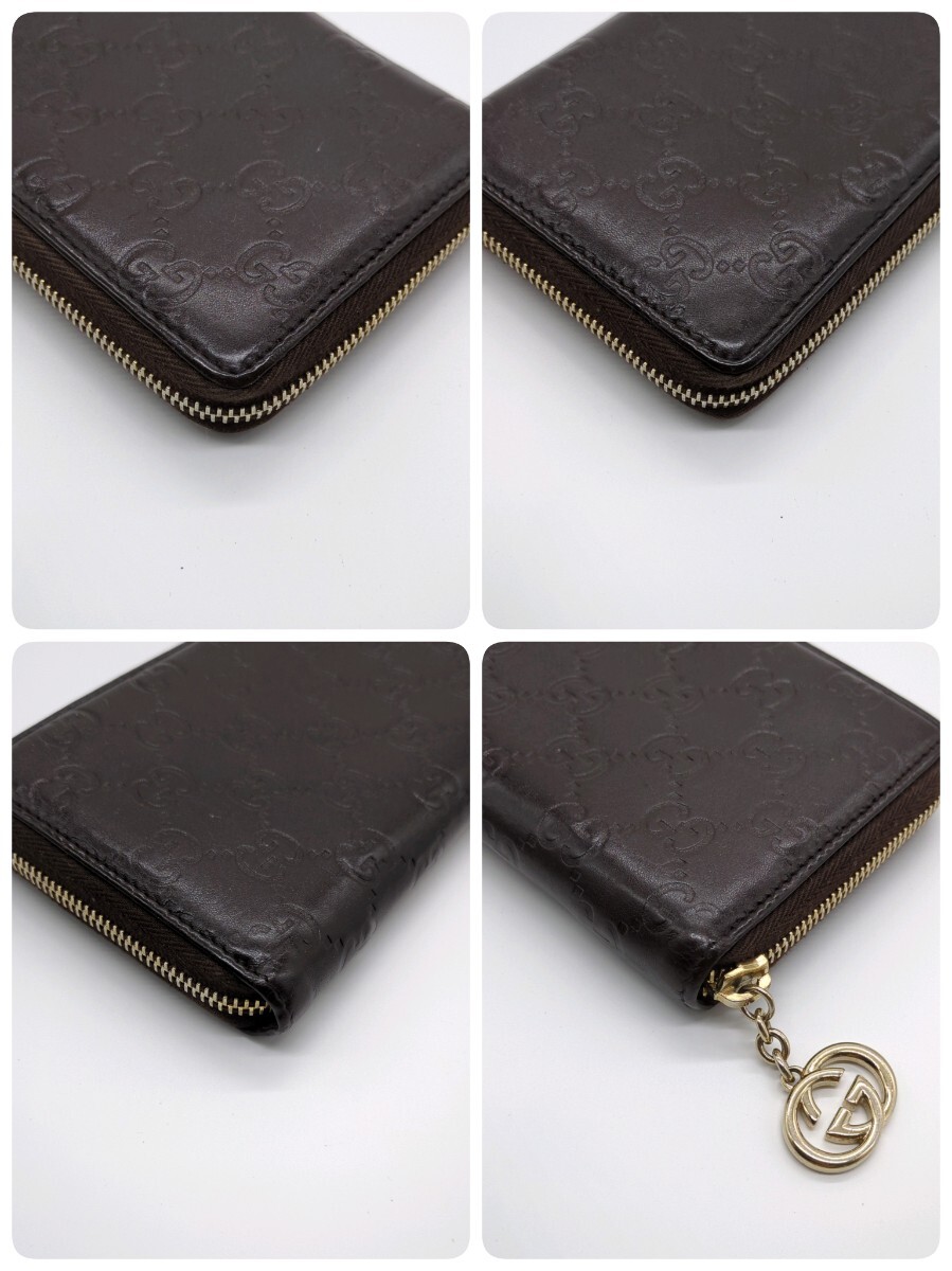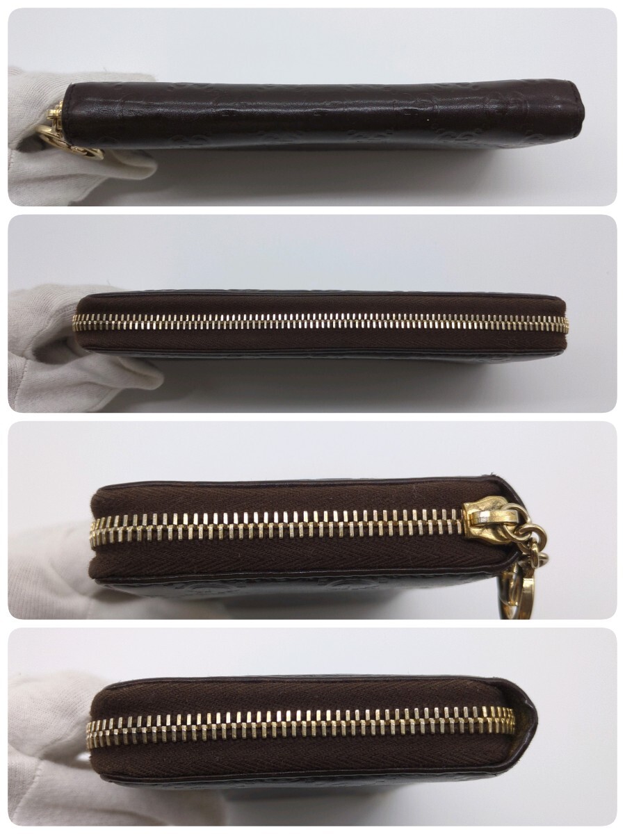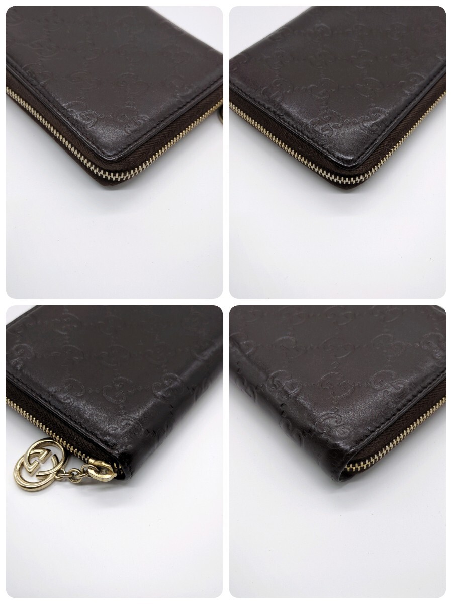 極美品 グッチ GUCCI GG柄 シマ 長財布 ロングウォレット レザー ラウンドファスナー ラウンドジップ インターロッキング ゴールド金具