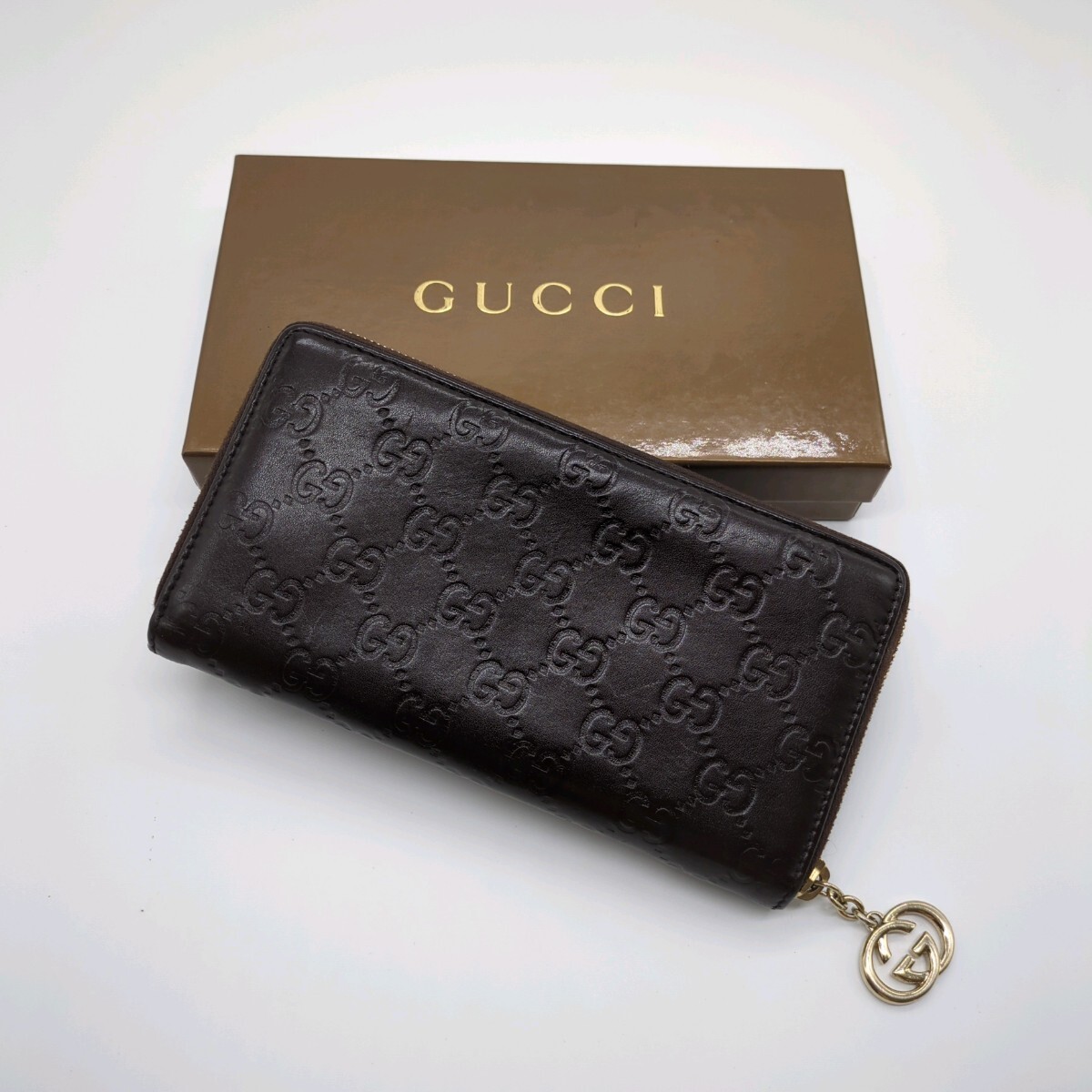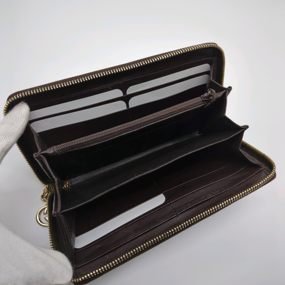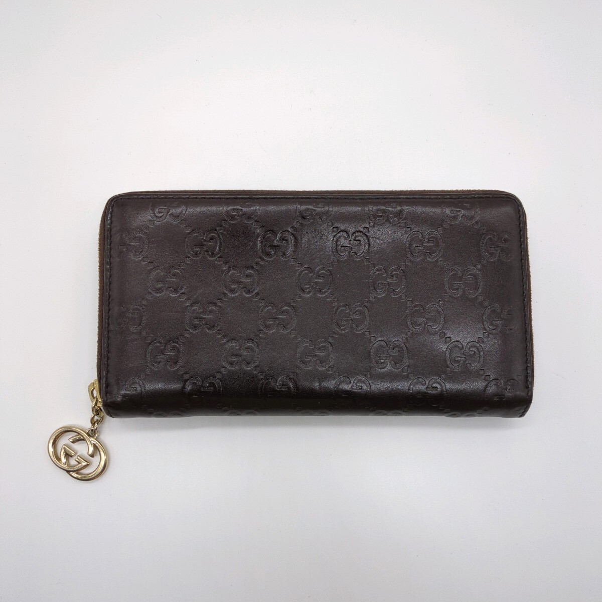 極美品 グッチ GUCCI GG柄 シマ 長財布 ロングウォレット レザー ラウンドファスナー ラウンドジップ インターロッキング ゴールド金具