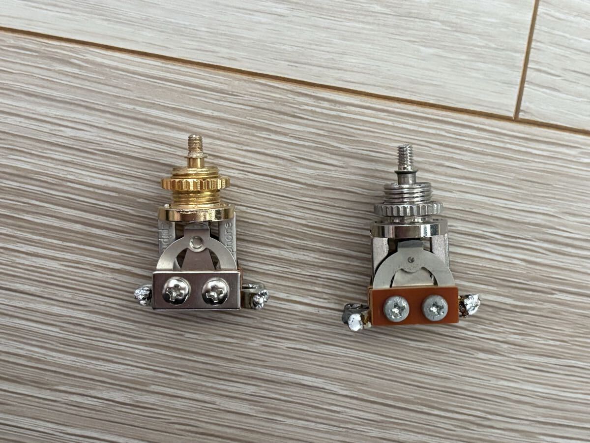 写真右 クロームものはAria Pro IIの70-80年代レスポールタイプから取り出しました。ミリサイズです。