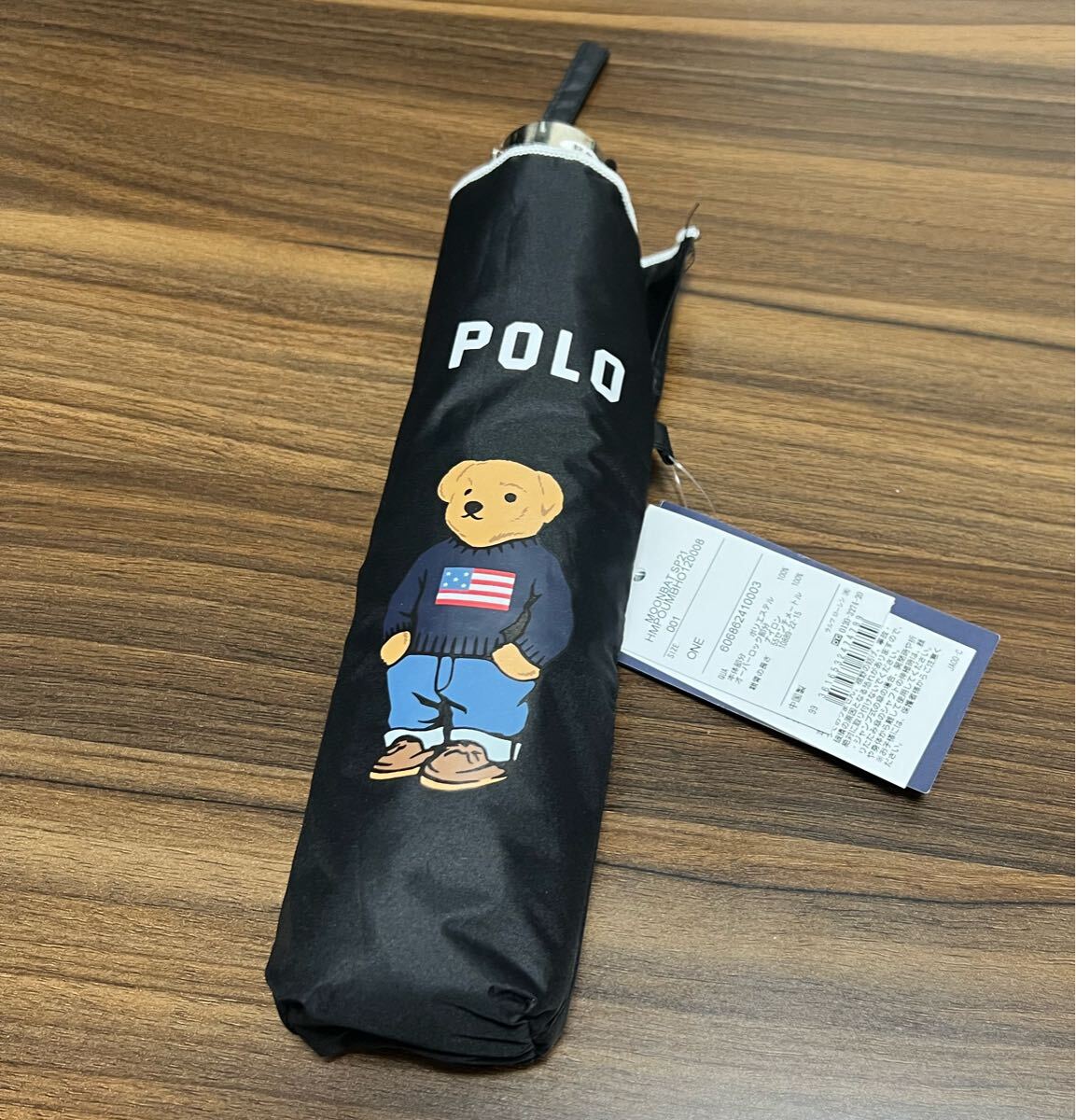 ブランドアイコンのポロベアを掲げた折り畳み傘。