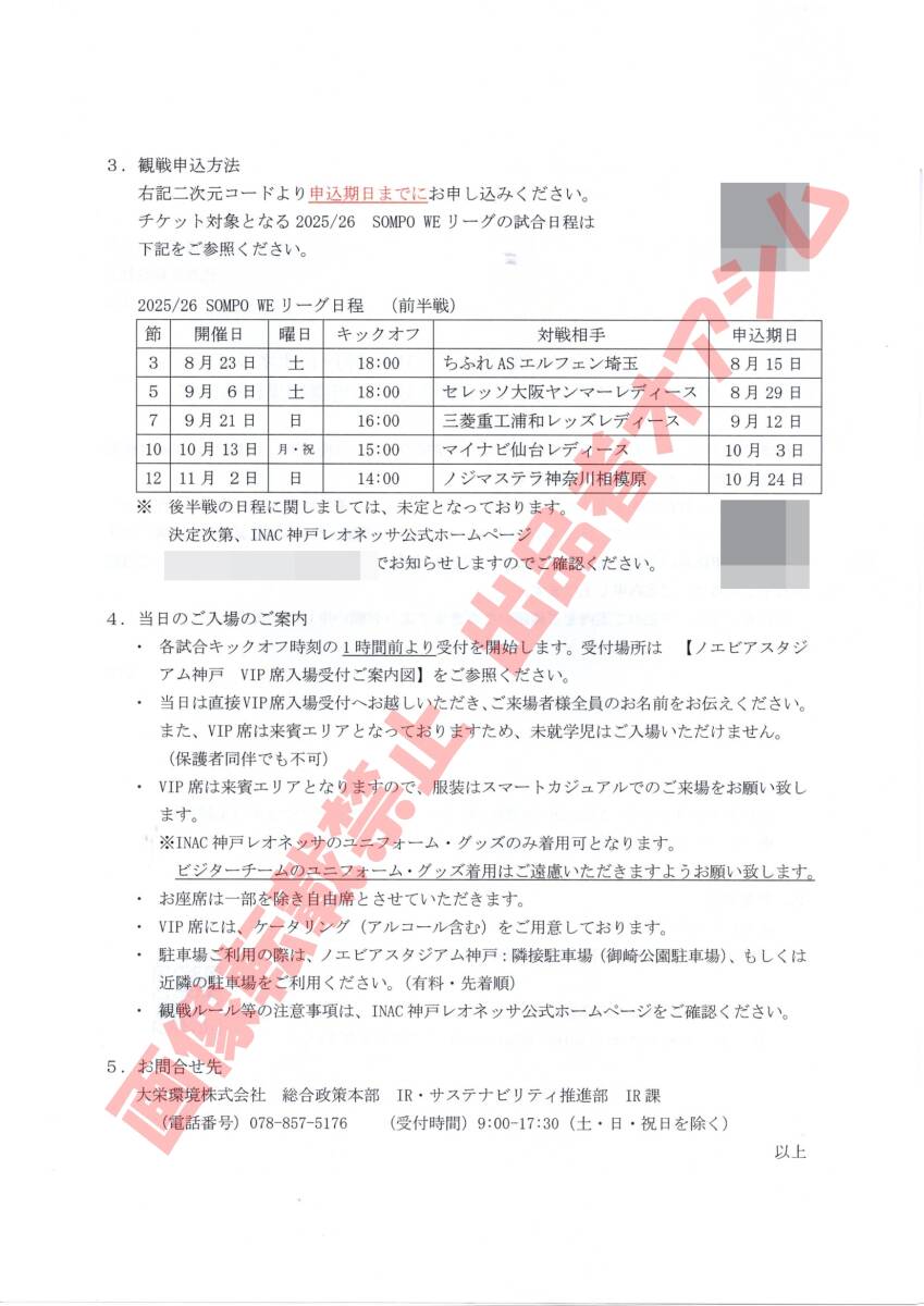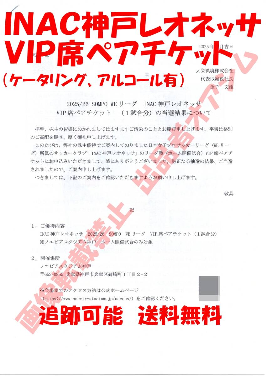 INAC神戸レオネッサ VIP席ペアチケット(1試合分)です。