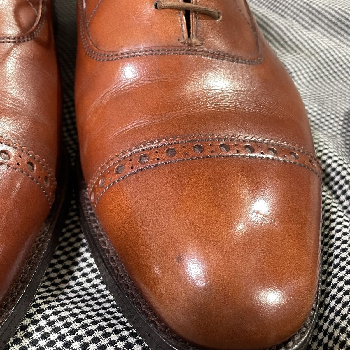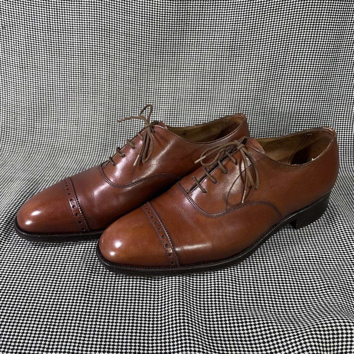 EDWARD GREEN 旧工場製 WILD SMITH 別注 レザーシューズ 60s 70s ヴィンテージ 革靴 エドワードグリーン ワイルドスミス ラスト88 柳11580 60年代 70年代 ビンテージ Vintage ドレス ビジネス LAST88 手書きサイズ 英国製 パンチドキャップトゥ ストレートチップ 上質レザー 入手困難 希少 激レア