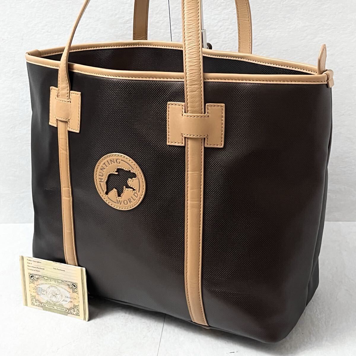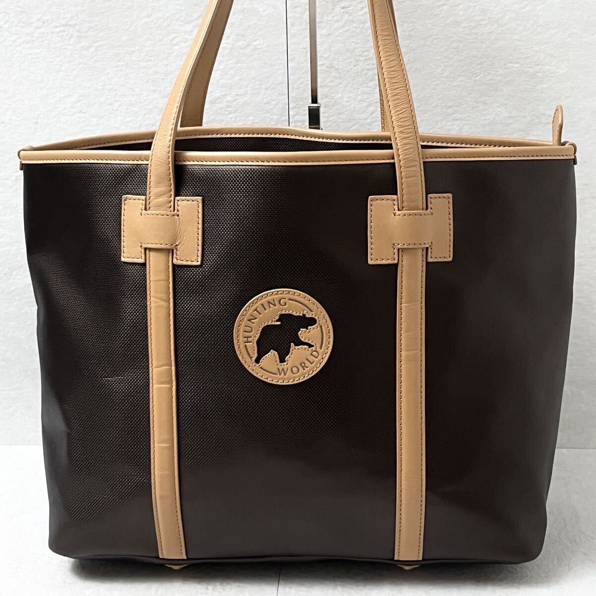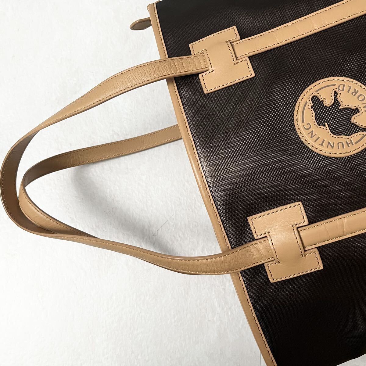 極美品/A4収納 ●HUNTING WORLD ハンティングワールド ★超希少モデル メンズ ビジネス トートバッグ ナイロン レザー 肩掛け ブラウン