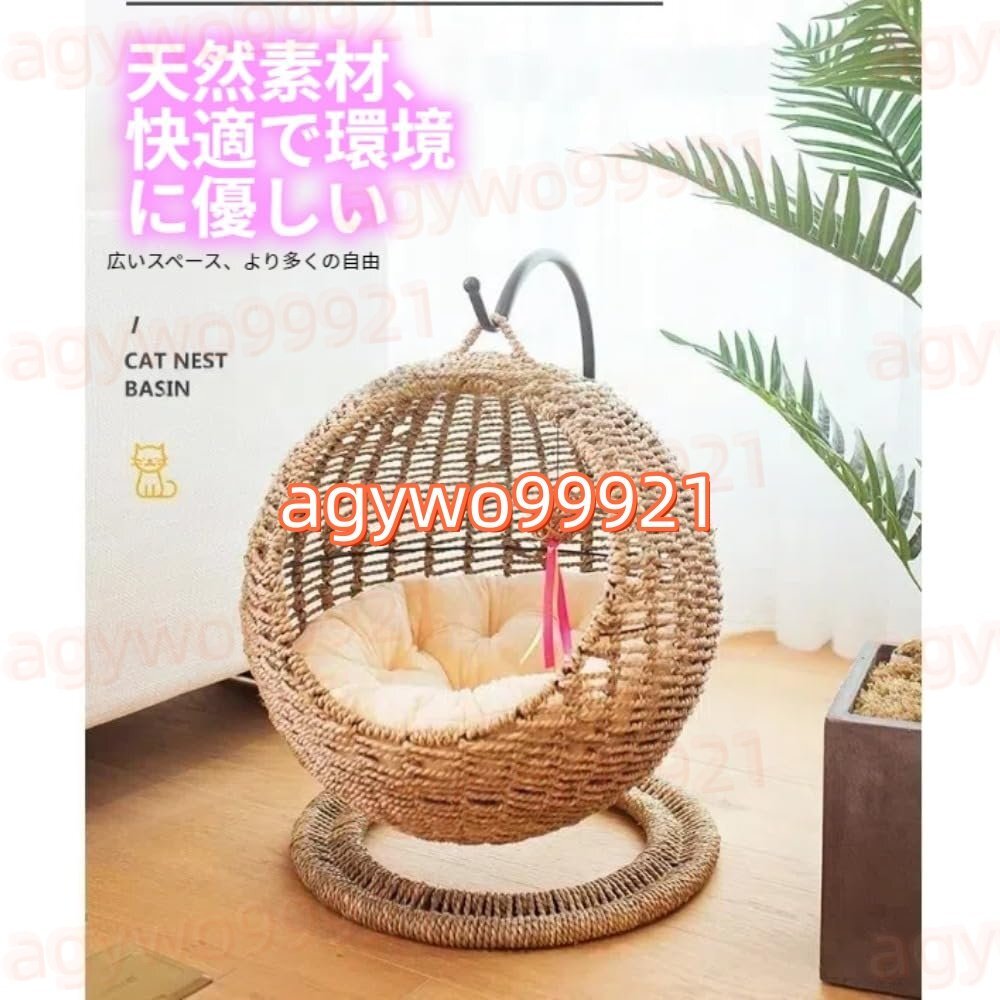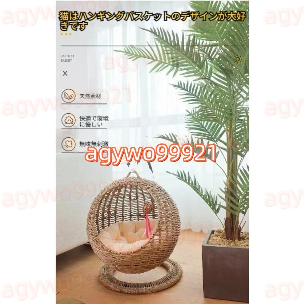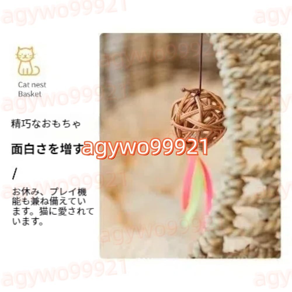高いところが大好きな猫ちゃんにとって、高いところは安心感満々のことが出来る場所です。この猫用ハンモックは、猫ちゃんが好きかなと思います!さらに、ハンギングバスケットおもちゃ付きの籐製猫ベッドは猫にもっと楽しみをもたらし、ペットの退屈を心配する必要がなくなります。