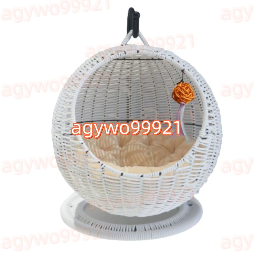 小動物 ゆりかご 猫 ペット 猫のハンモック 編み籠ハウス 2in1猫小屋 多色選べ 通気性 四季を通じて使える 洗濯可能 お洒落 寝台 休憩所 おしゃれ 籐製 大型猫 ベット 屋外 室内 (ブラック) (ホワイト)