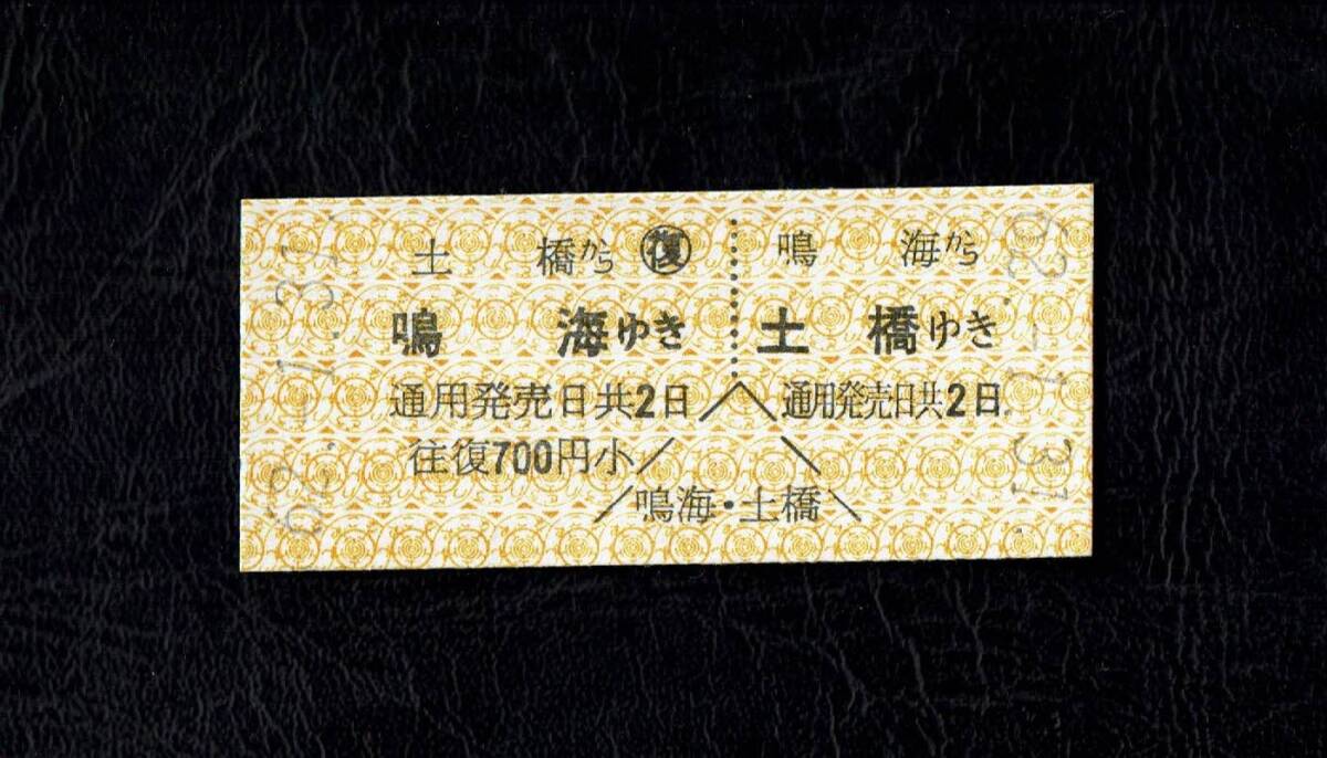 [名鉄] 鳴海から土橋ゆき 往復乗車券 旧地紋 - 硬券 名古屋鉄道