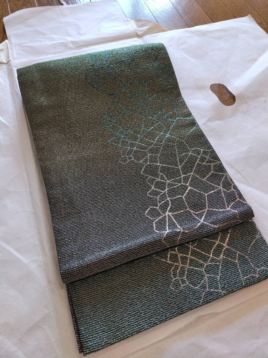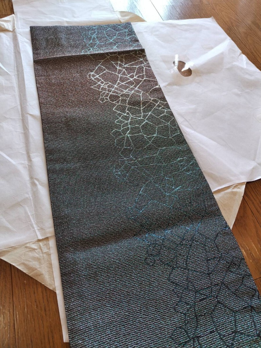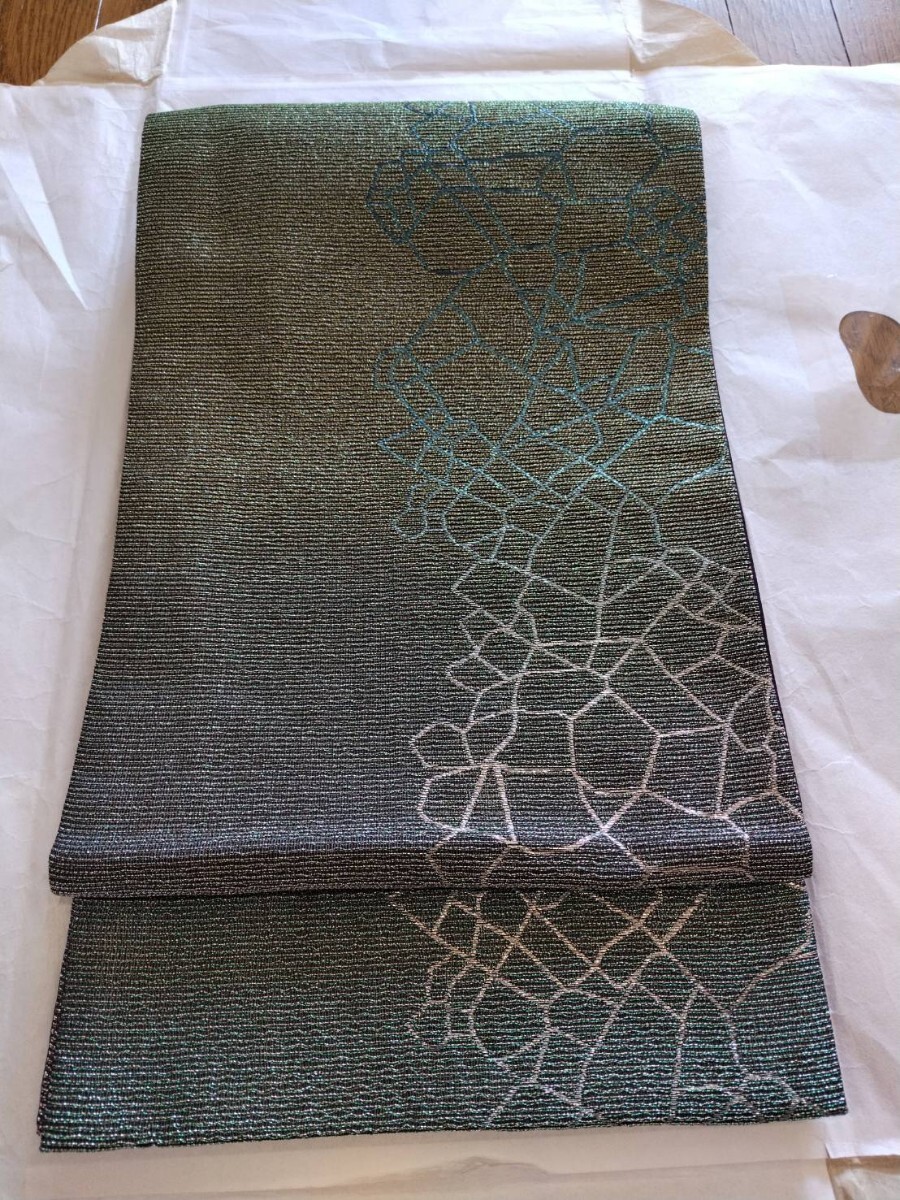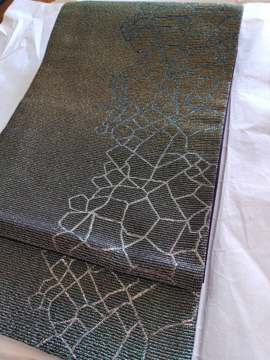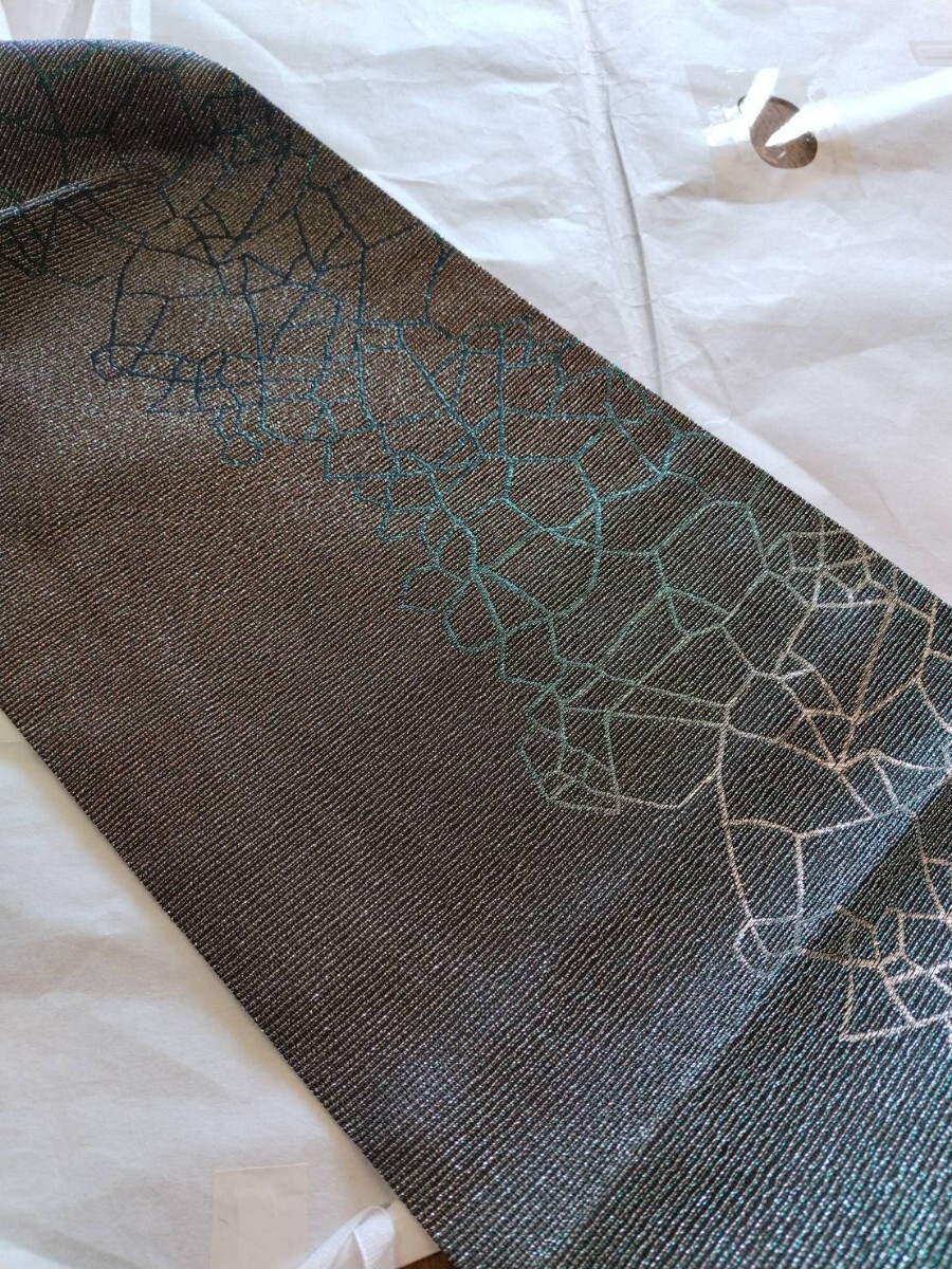 残念ながら織元、作家は不明ですがとても織味、手触りの良い袋帯です。