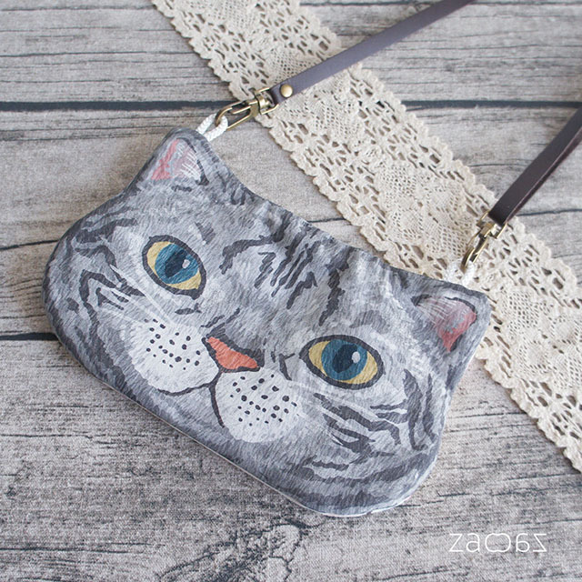 スマホショルダー/ポシェット/コンパクトバッグ/サコッシュ/スマホケース/ネコ/cat/サバトラ