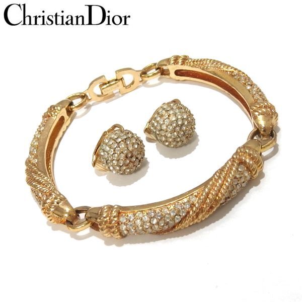 ★Christian Dior ストーン ゴールド イヤリング ブレスレット 2点セット ヴィンテージ オールド クリスチャン・ディオール★