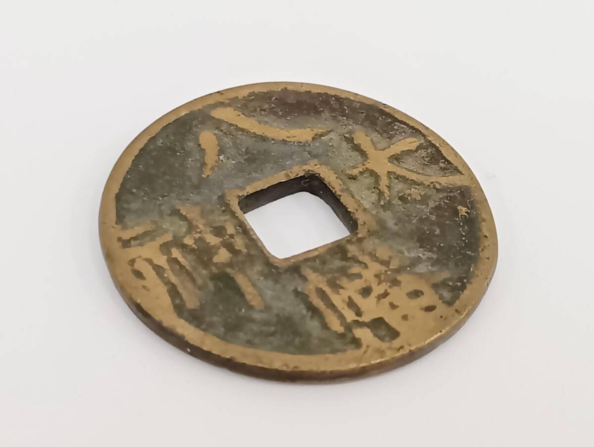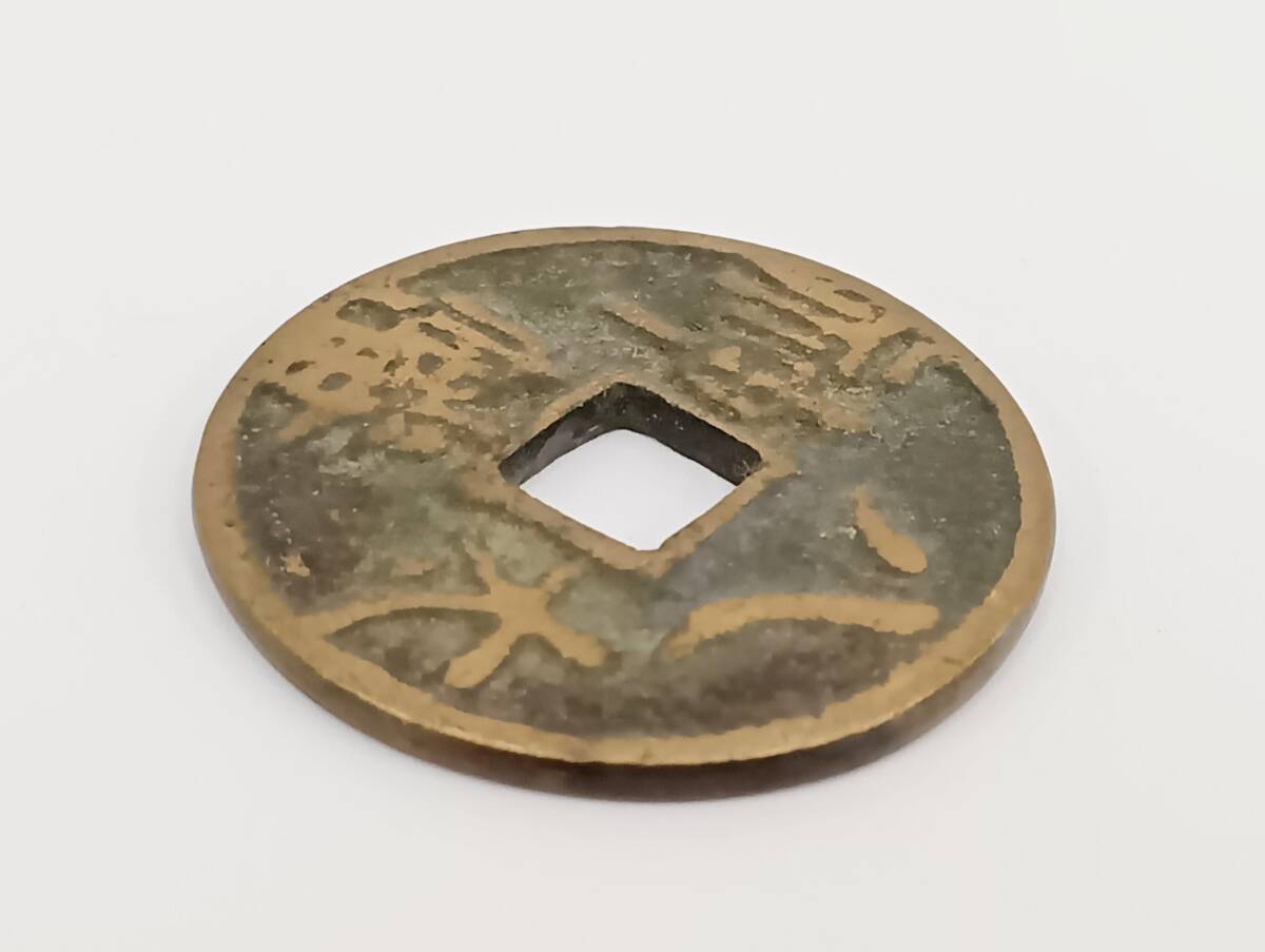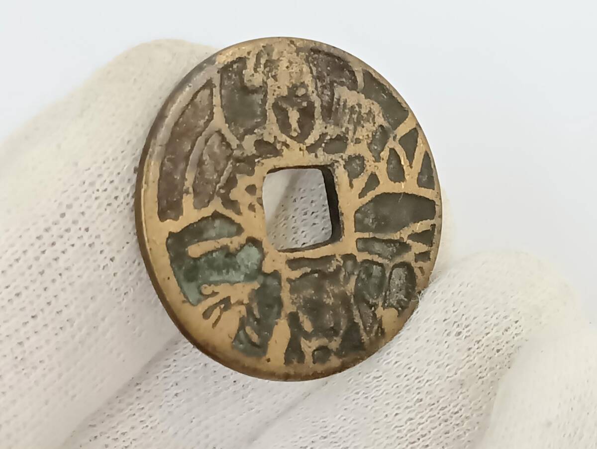 ☆絵銭 八幡太神 直径 約25.2mm 重さ 約6.3g 古銭 八幡神 お守り 縁起物 レトロ玩具 記念品 穴銭 福銭 硬貨 コイン 詳細不明 |