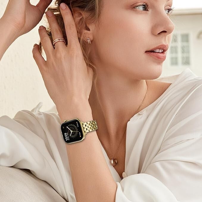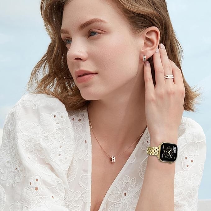 【高品質ステンレス素材】このストラップは、プレミアムなステンレス鋼を採用して、しなやかに放つ上品な光沢が、洗練された高級感を演出します。表面のメッキ処理で、耐食性と耐摩耗性に優れた設計で、手洗いやスポーツ時の発汗でも気にせずご使用いただけます。実用的でありながらスタイリッシュなデザインで、美しい輝きをお楽しみください。