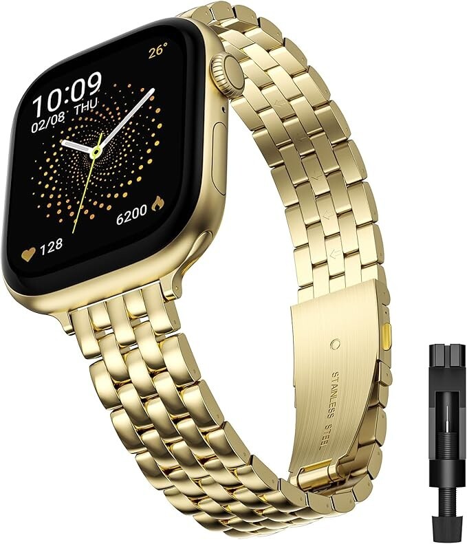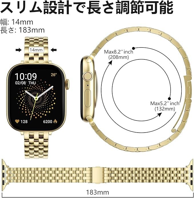 スリム ステンレスバンド コンパチブル Apple Watch バンド 49mm 46mm 45mm 44mm 42mm 41mm 40mm 38mm レディース 超細い アップルウォッチバンド おしゃれ ビジネス 腕時計交換ベルト 折りたたみ式バックル iWatch Series 11/10/9/8/7/6/5/4/3/2/1/Ultra3/Ultra2/Ultra/SE3/SE2/SEに対応 調整ツール付き