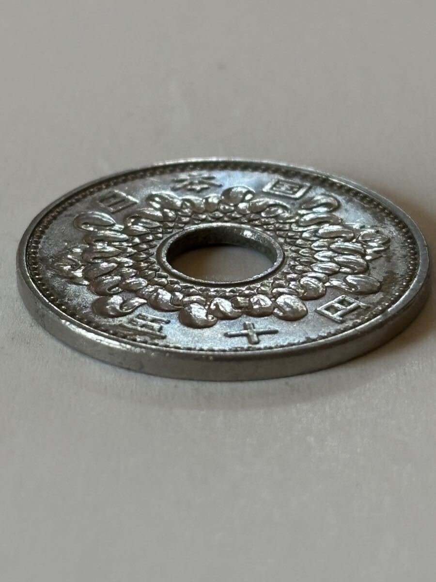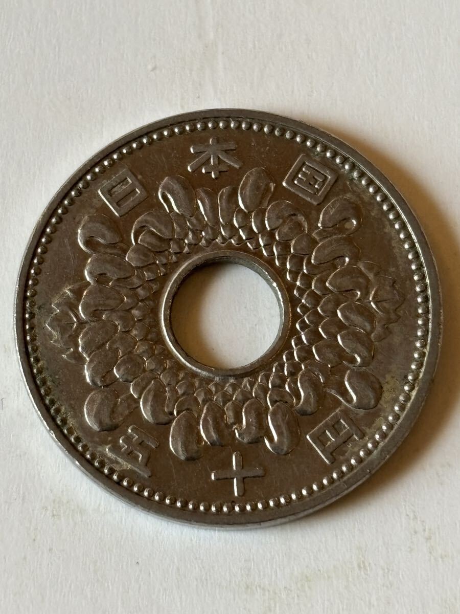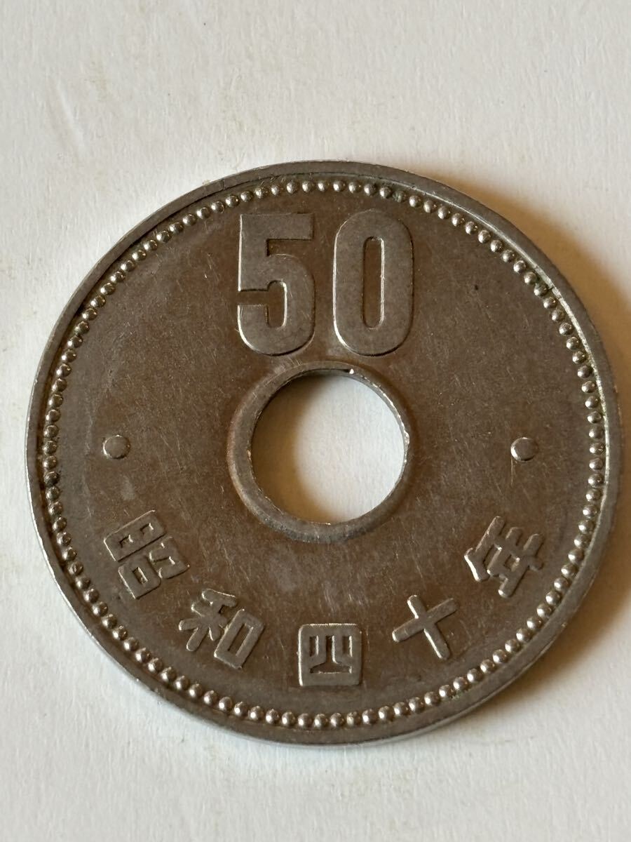 I昭和四十年発行の50円硬貨、花の模様が特徴的。