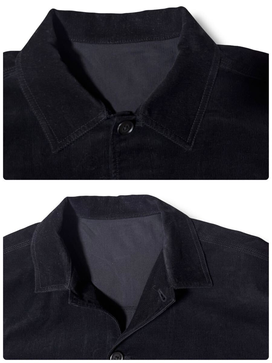 ジーユーのコーデュロイ素材のジャケット。 ブラックの落ち着いた色合いに、柔らかな生地感。羽織として使いやすい一着です。