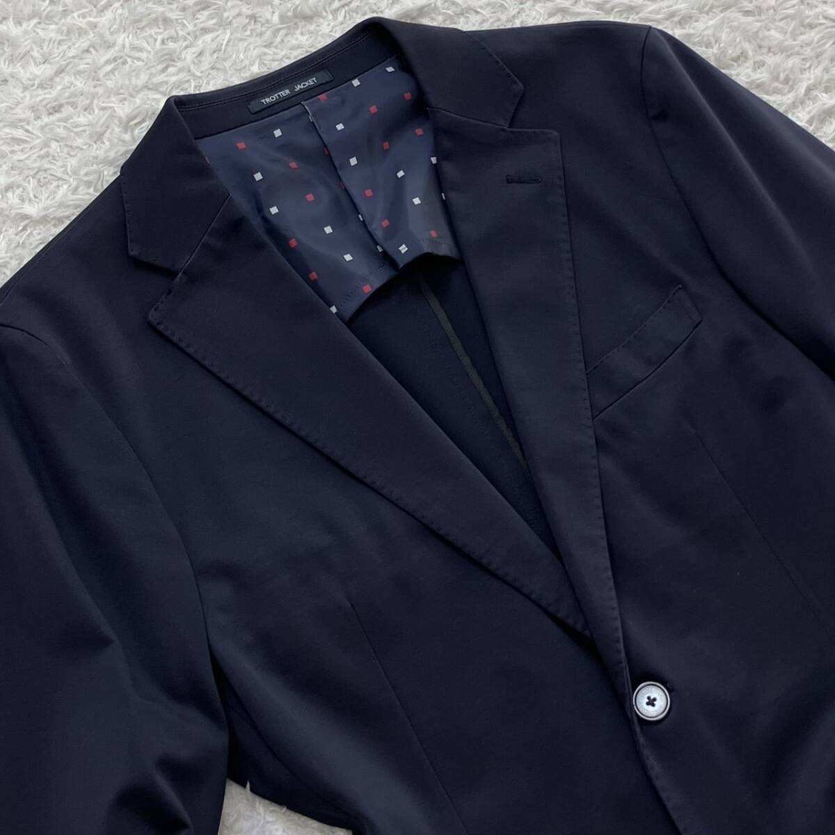人気TROTTER!希少L!マッキントッシュ MACKINTOSH テーラードジャケット アンコン トロッター 伸縮性 厚手 メンズ ビジネス ネイビー 紺 40