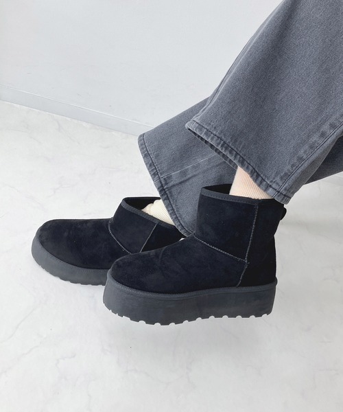 キーワード:ブーツ レディース ヒール ミドル ムートン 厚底 紐なし 秋 冬