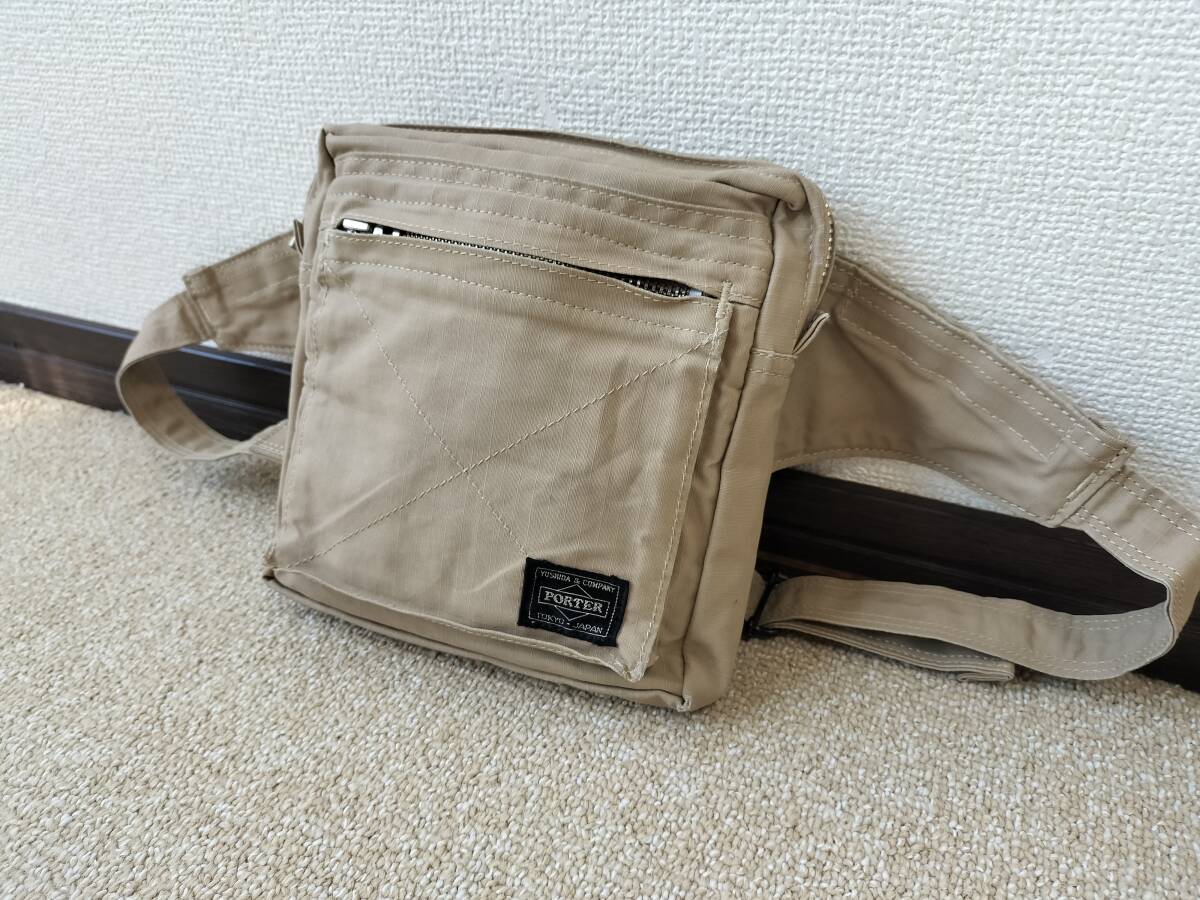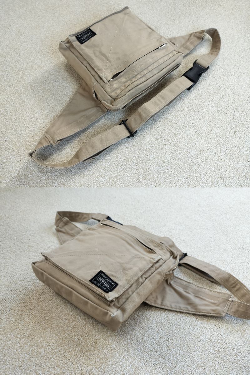 ★丁度良いサイズ感&使い勝手良!!★吉田カバン PORTER CUBE ポーター ウエスト&ボディーバッグ / ベージュ系色 NO.553-06528