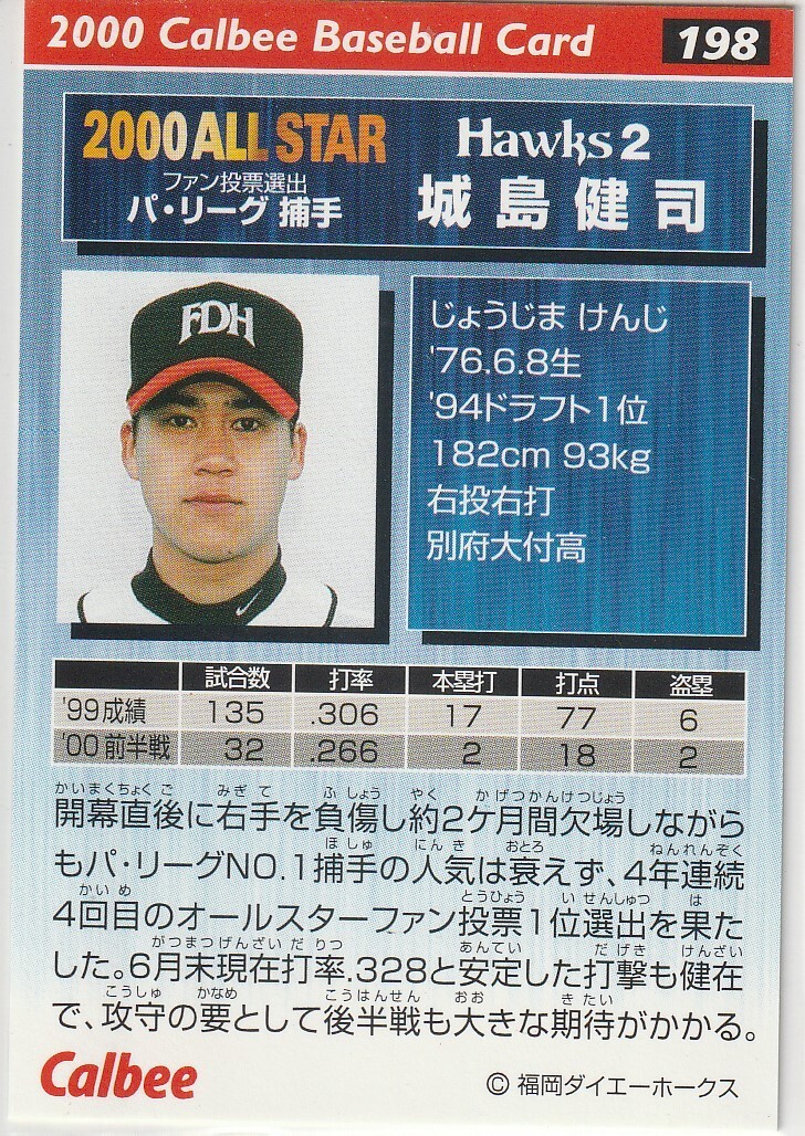 ●2000カルビー【城島 健司】 プレ版:金箔押サインパラレル:オールスター No.198:ホークス R2