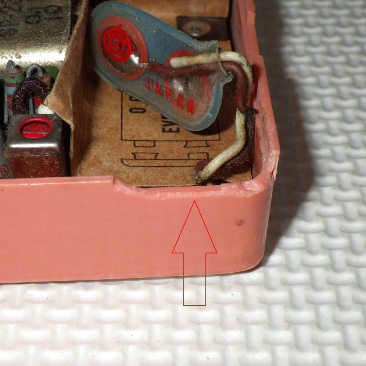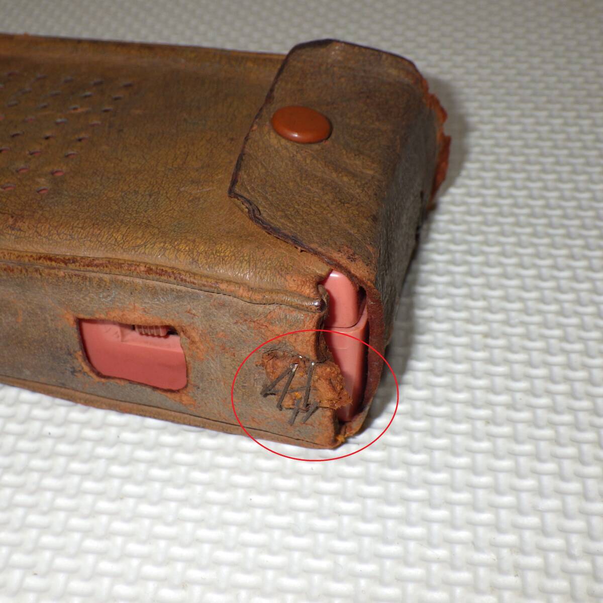 ◎ 筐体の端に欠けがあり,裏ブタがしっかりと固定できません(最8-9枚目の写真の矢印).また,ケースのストラップ固定部に修理跡があり,ストラップも欠落しています(最後の写真の赤丸).