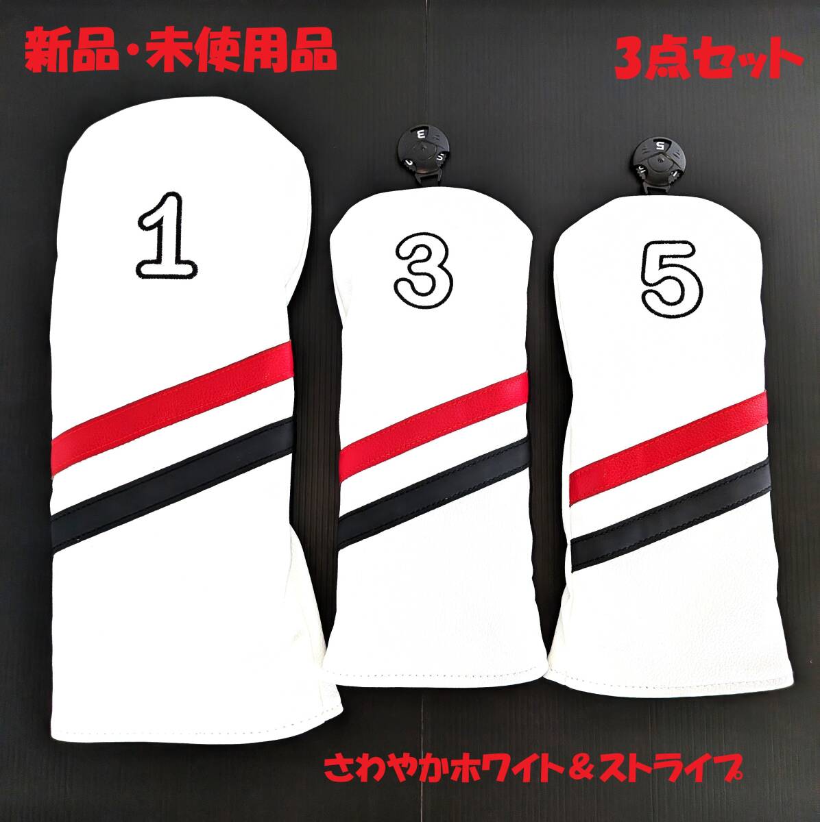 ☆新品 ヘッドカバー1W 3W 5W 3個セット☆ さわやかホワイト&ストライプ