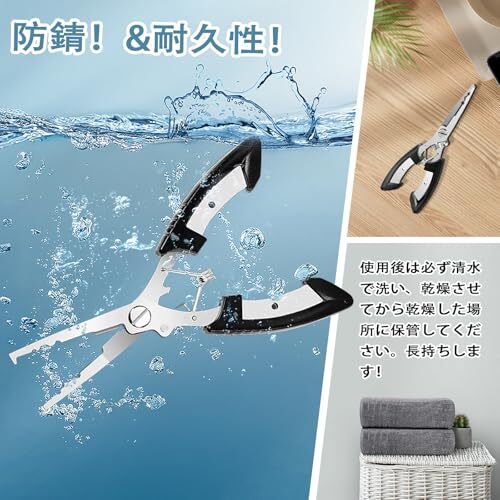 【ステンレス鋼&防錆】耐久性に優れたステンレス素材を採用しており、錆に強く、海釣りや淡水釣りの両方に最適です。使用後は、清水で洗浄し、必ず乾燥した環境で保管することで、その長持ち効果を最大限に引き出すことができます。