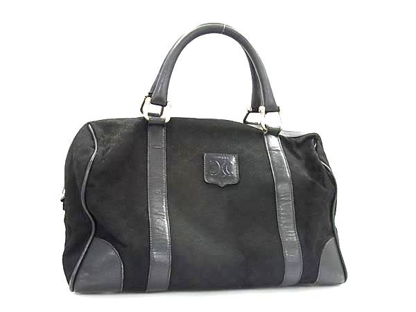 1円 CELINE セリーヌ マカダム柄 キャンバス×レザー ハンドバッグ トートバッグ レディース ブラック系 BP5211