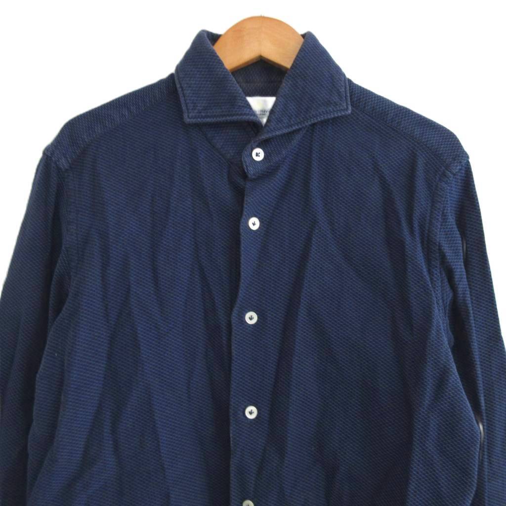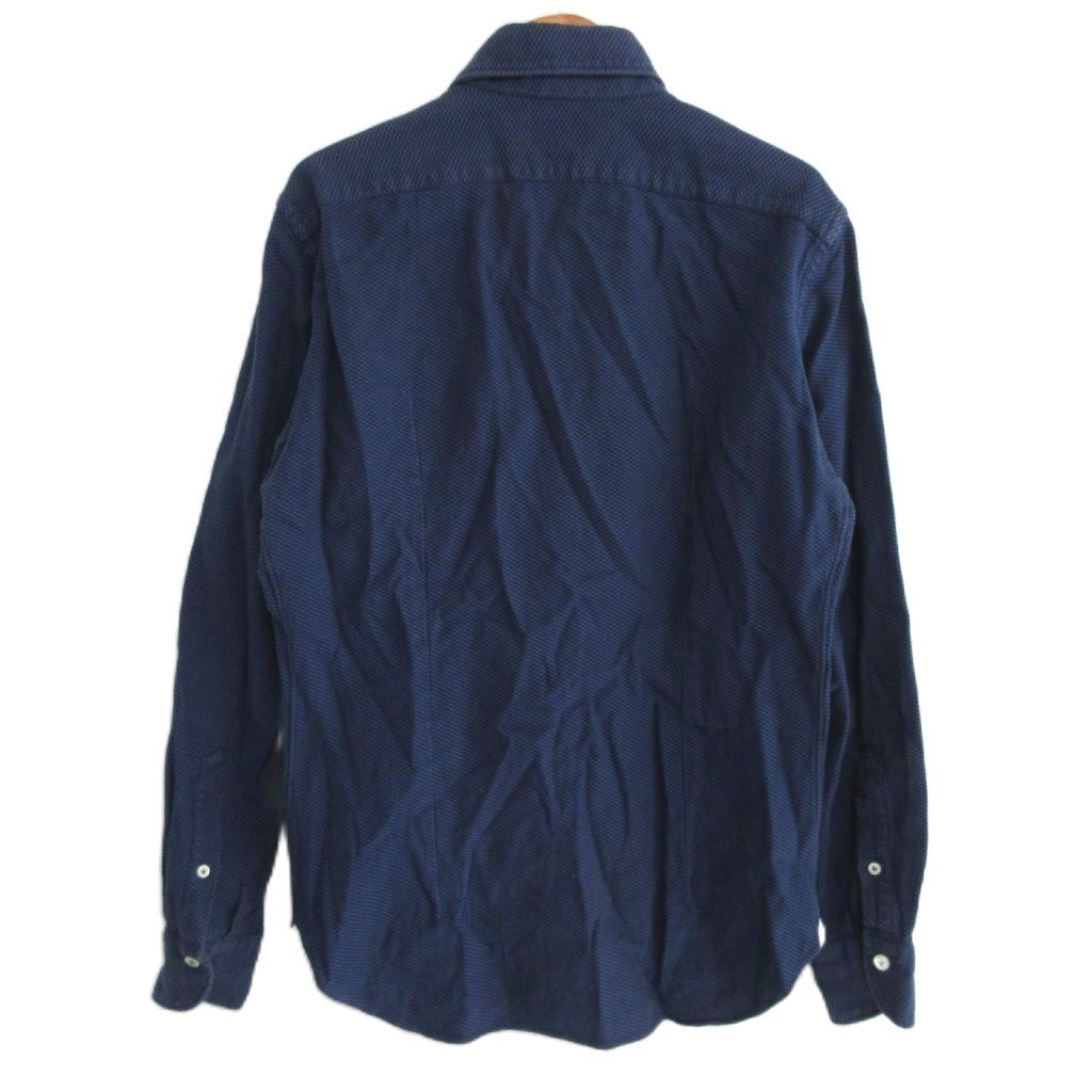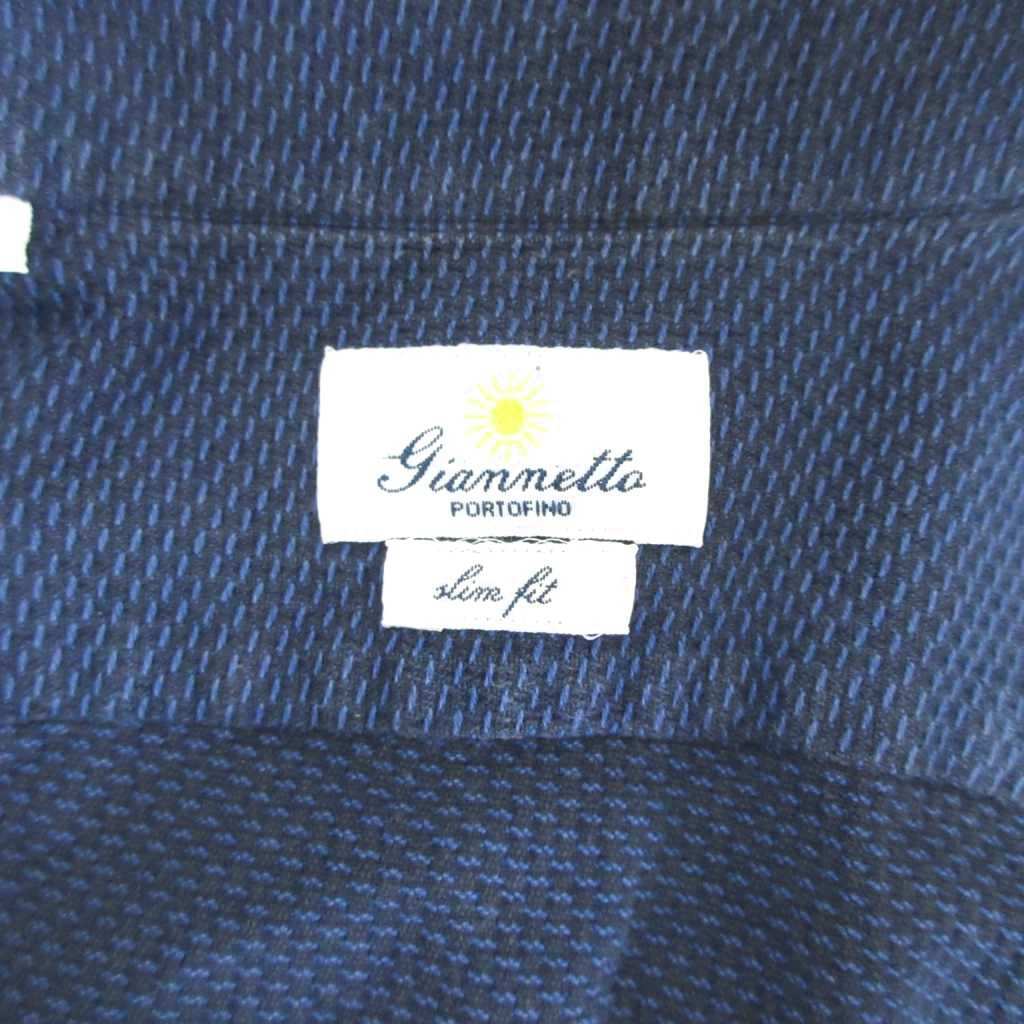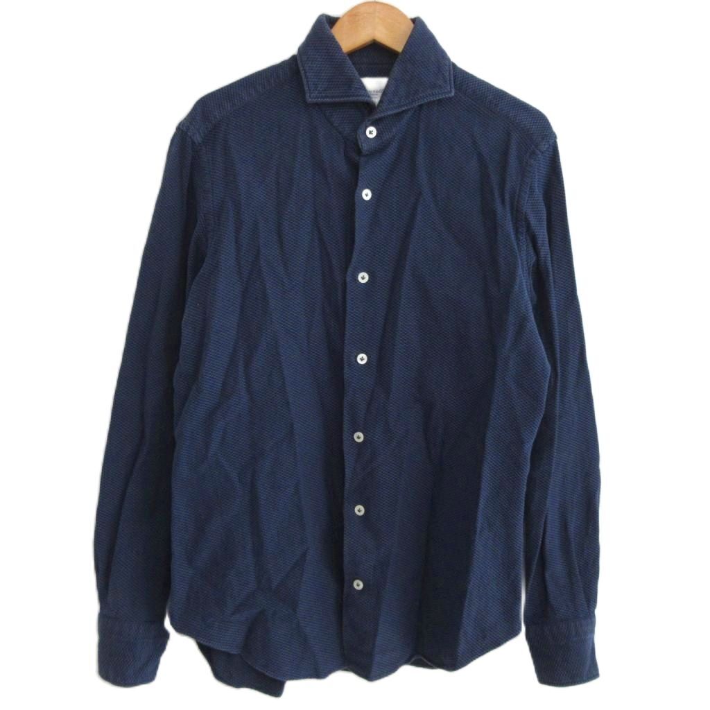 ジャンネット GIANNETTO ワイドカラー シャツ 長袖 イタリア製 紺 ネイビー M IBO80 メンズ