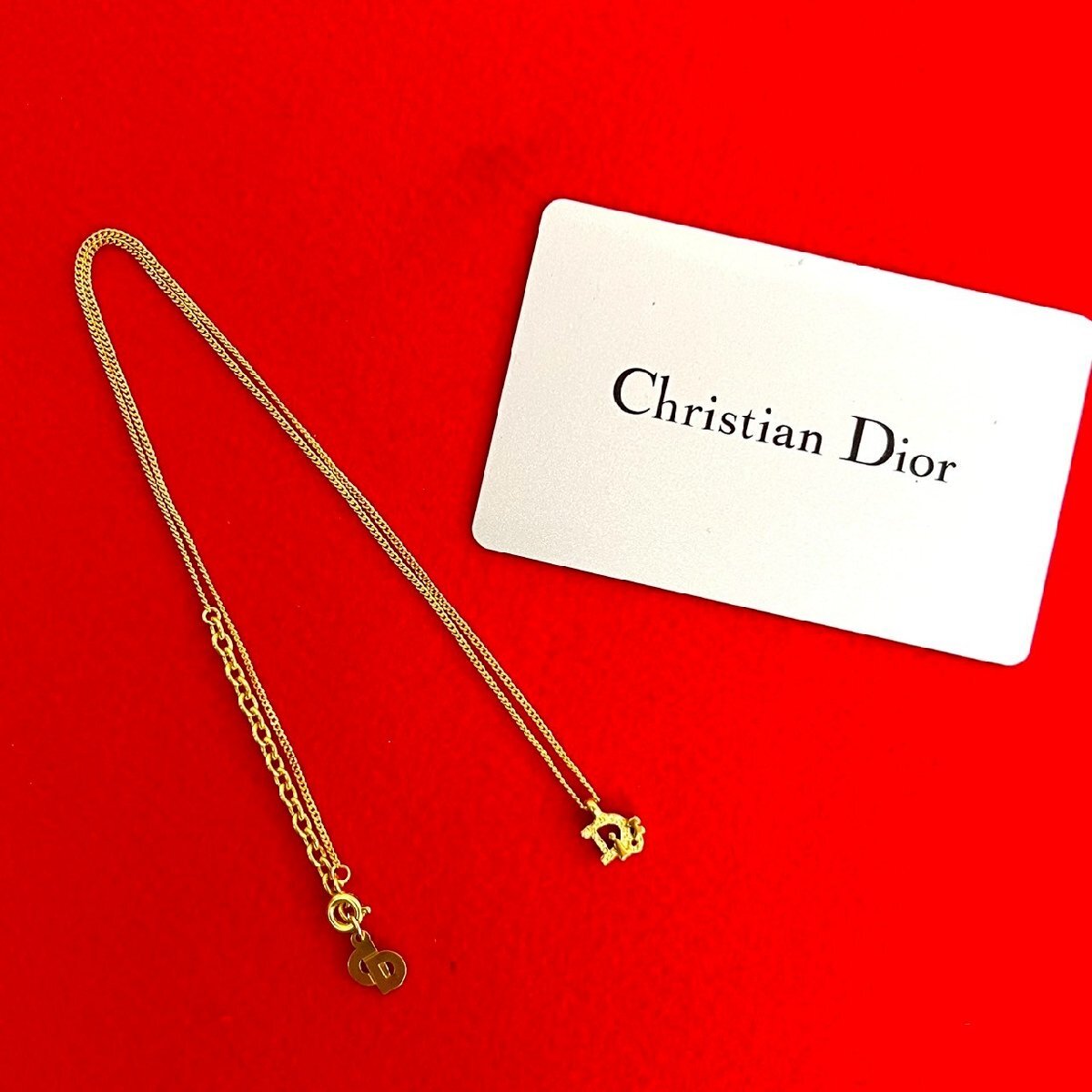 Christian Dior クリスチャンディオール ロゴ モチーフ チェーン ネックレス ペンダント アクセサリー 小物 ゴールド d73-1