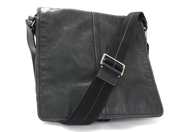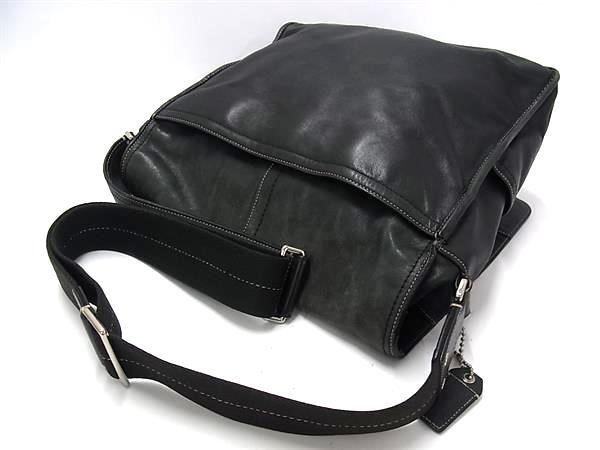 1円 COACH コーチ F70105 レザー×キャンバス クロスボディ ショルダーバッグ 斜め掛け メンズ ダークグリーン系×ブラック系 GA4921