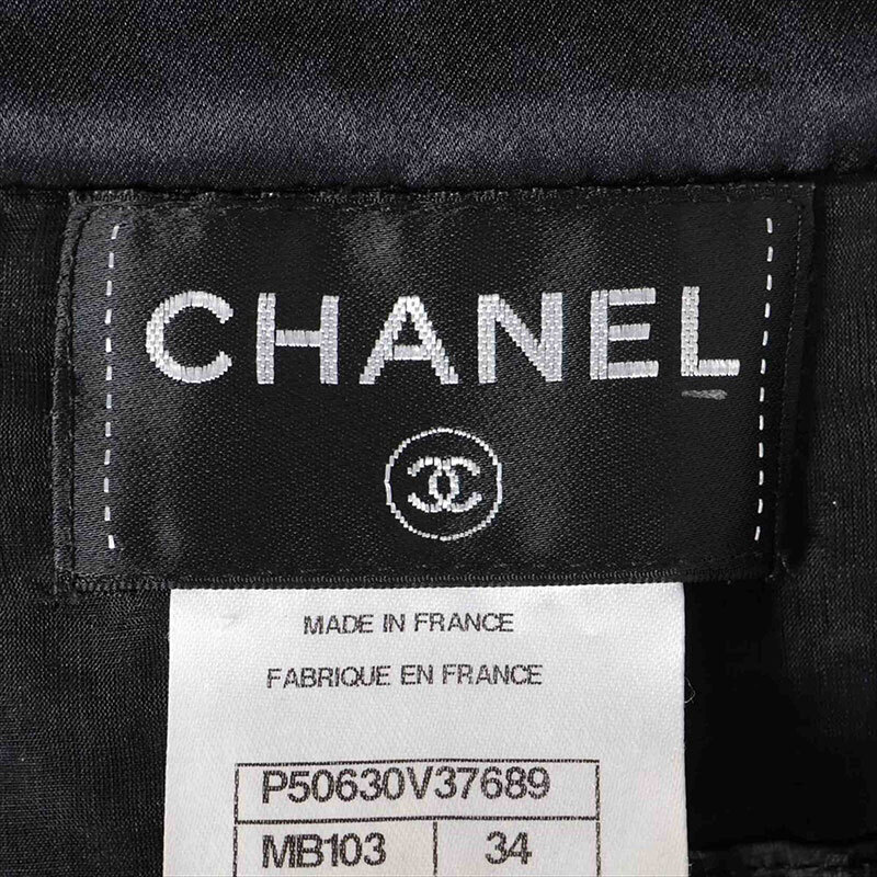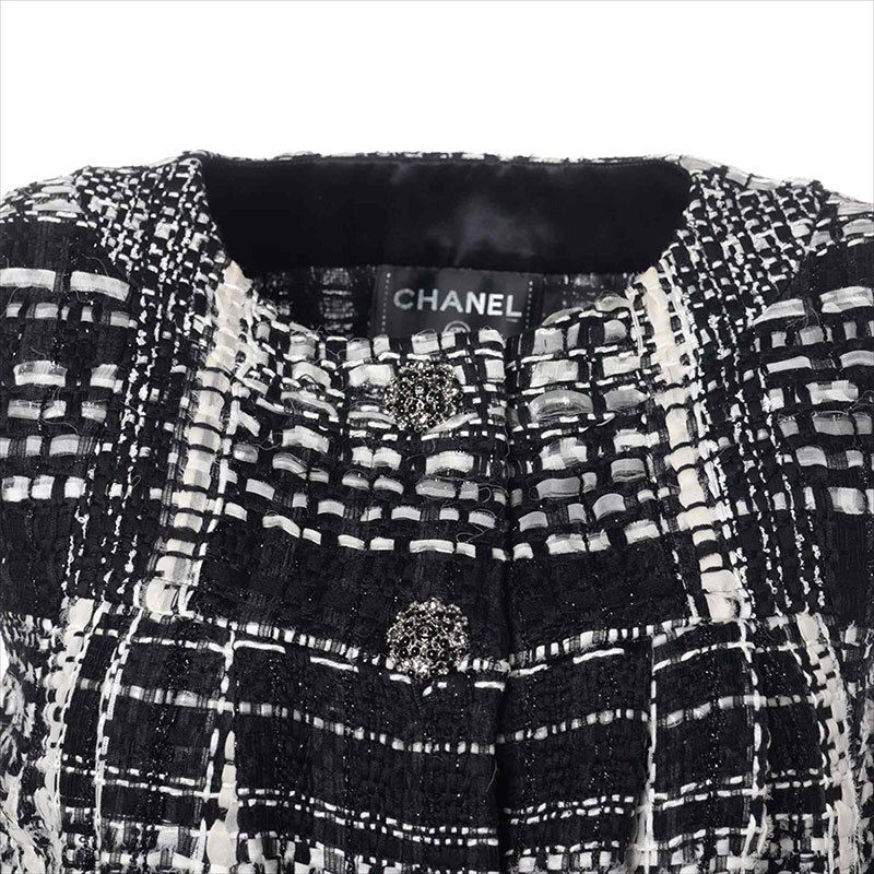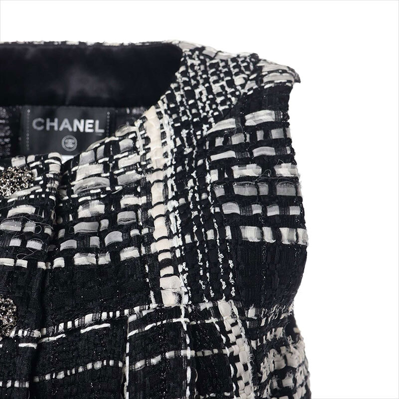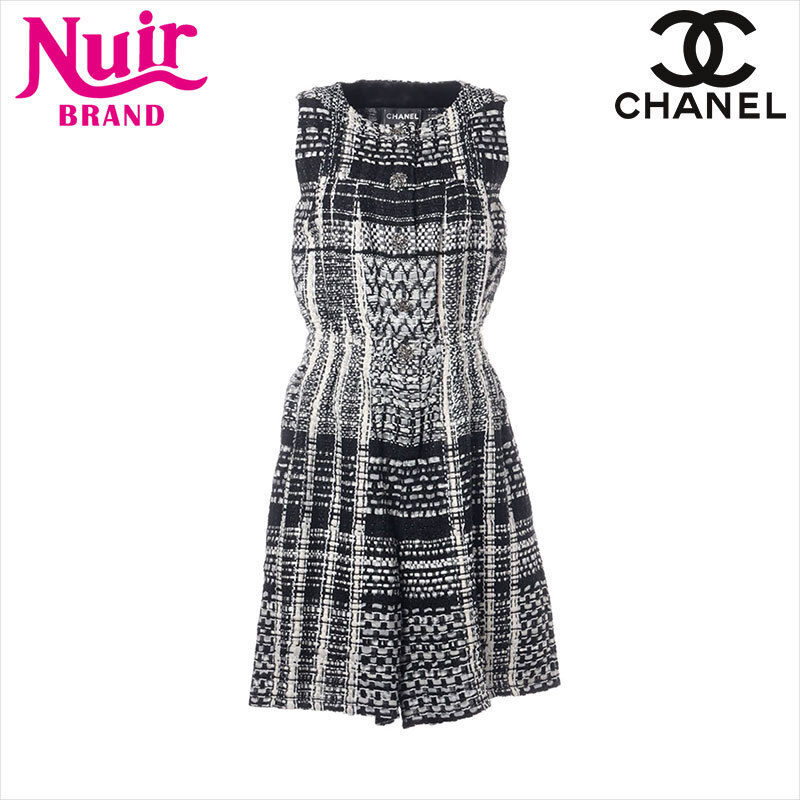 シャネル CHANEL ワンピース Size:34 ツイード ノースリーブ 2015年 グリポア ボタン ブラック