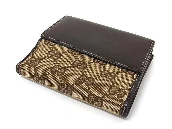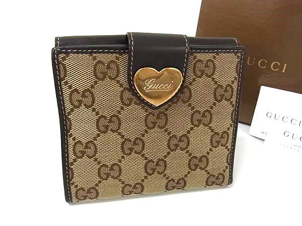 1円 GUCCI グッチ 203549 GG柄 GGキャンバス×レザー ハート Wホック 二つ折り 財布 ウォレット 小銭入れ 札入れ ブラウン系 FU2305