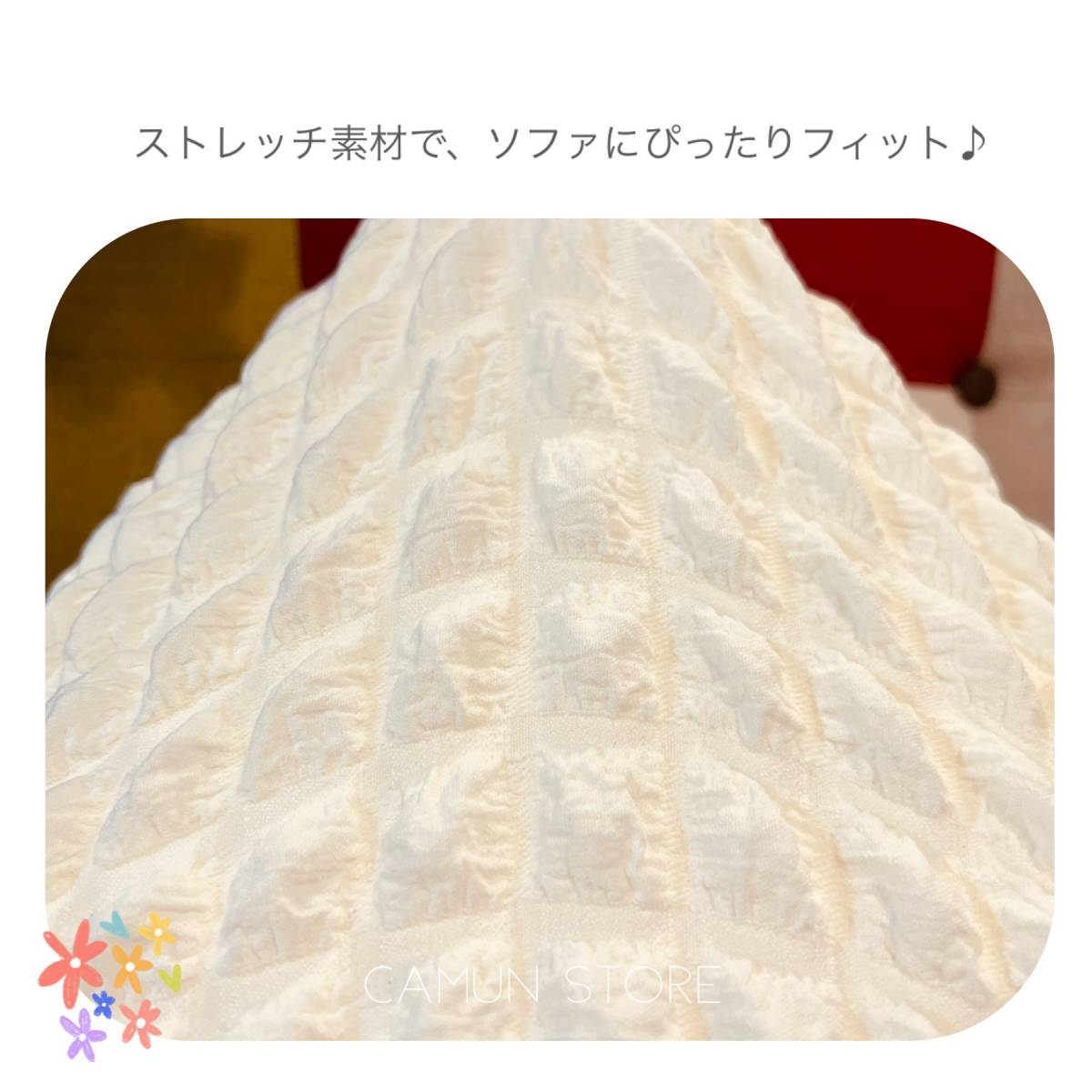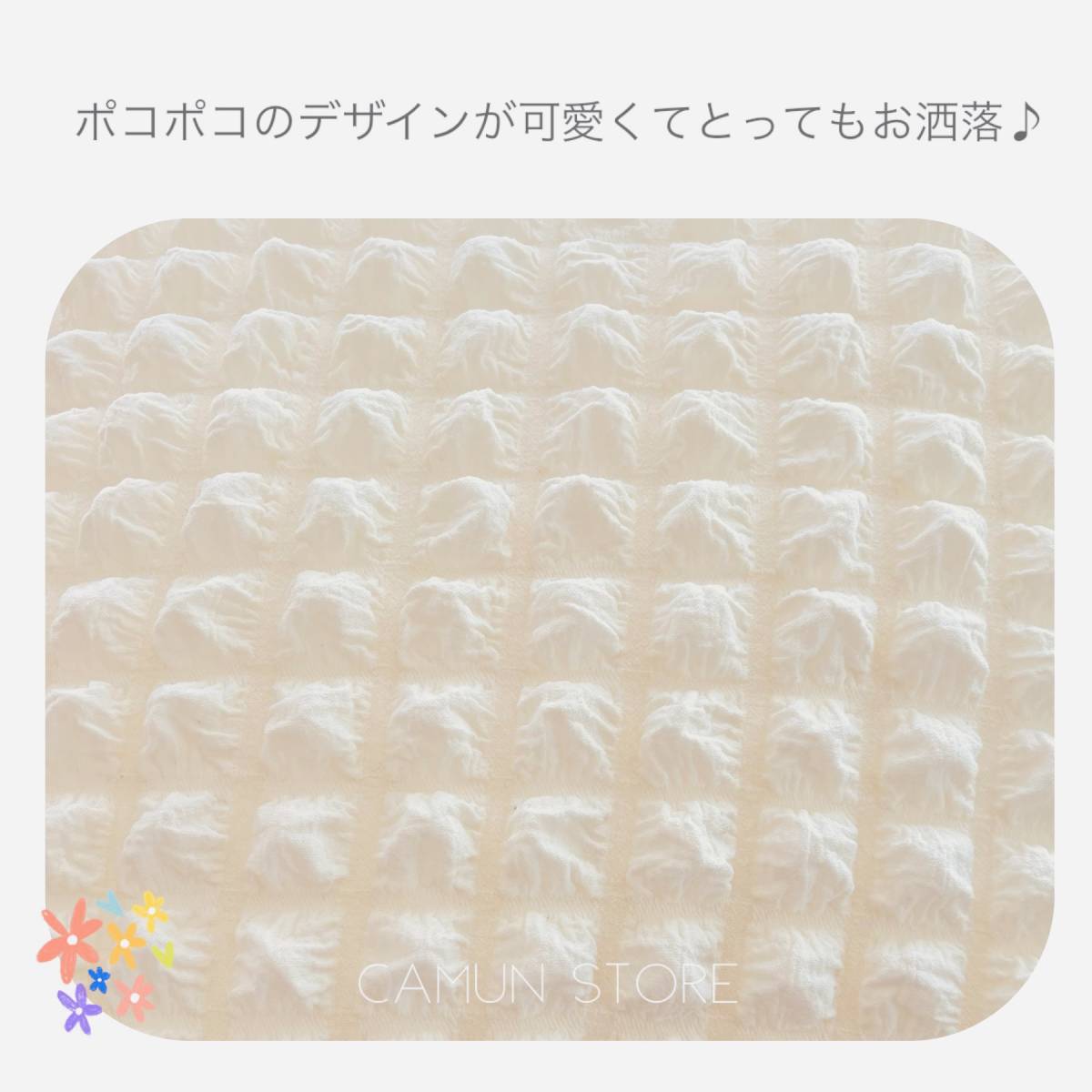 • オールシーズン快適な素材、ポコポコ素材がかわいくておしゃれなチェアカバー。