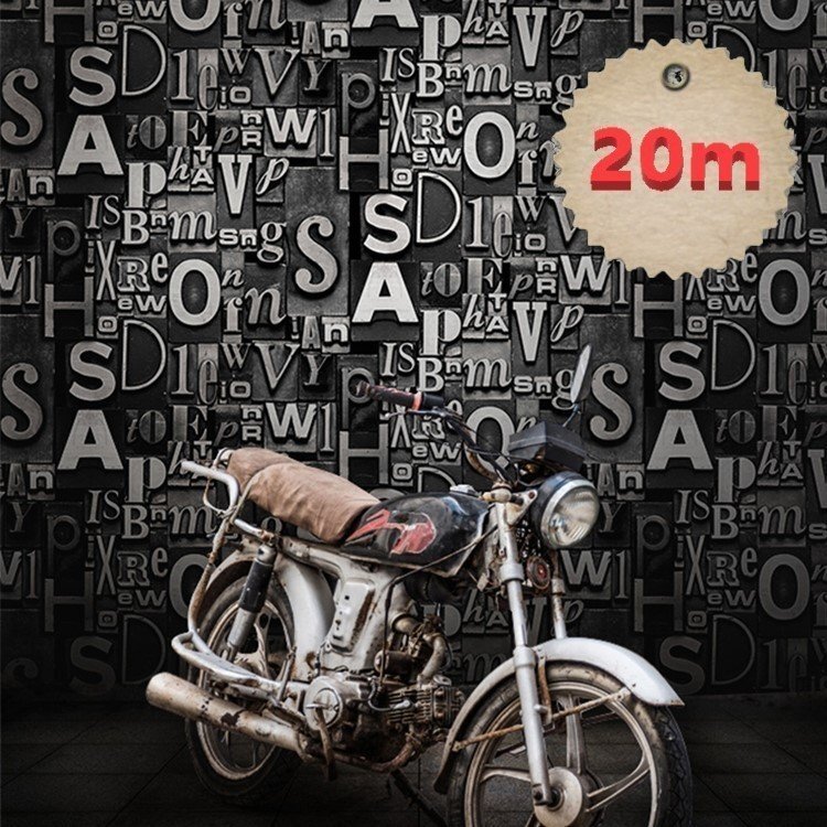 3D ウォールペーパー 【ビンテージロゴ×グレー】 英字 53cm×20m アンティーク DIY のりなし 壁紙 クロス リメイク 欧米