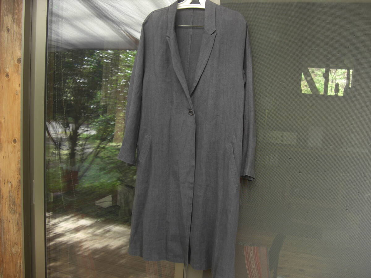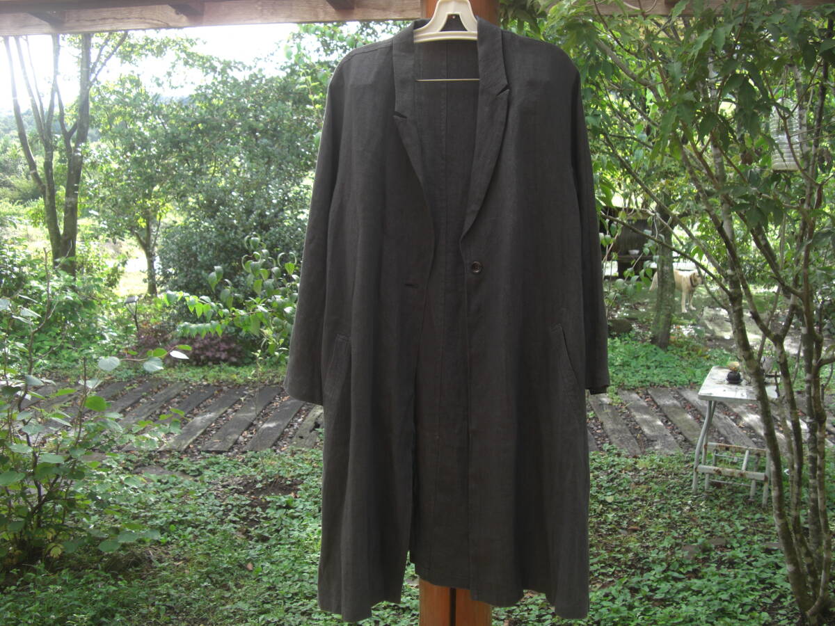 リネンやコットンなどの天然素材の持つ風合いを生かした服を手掛ける福岡発のブランドポプリのたっぷりしたシンプルなスタイルの麻のコートです。