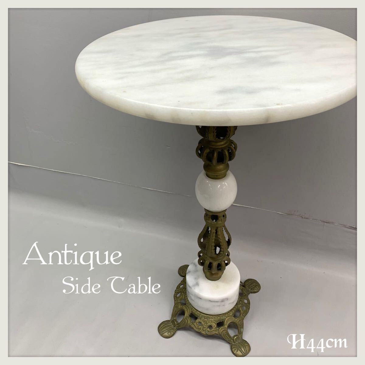 ・アンティーク調 大理石風 サイドテーブル