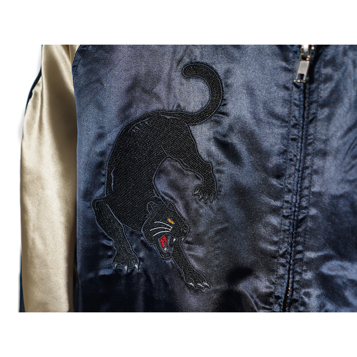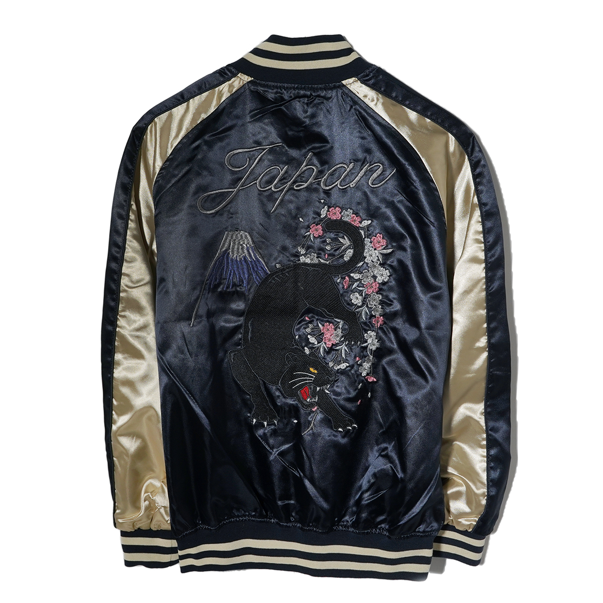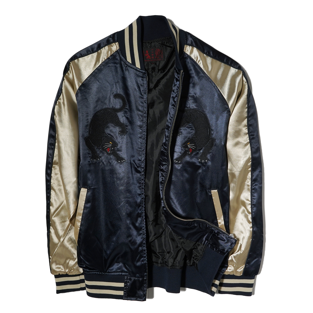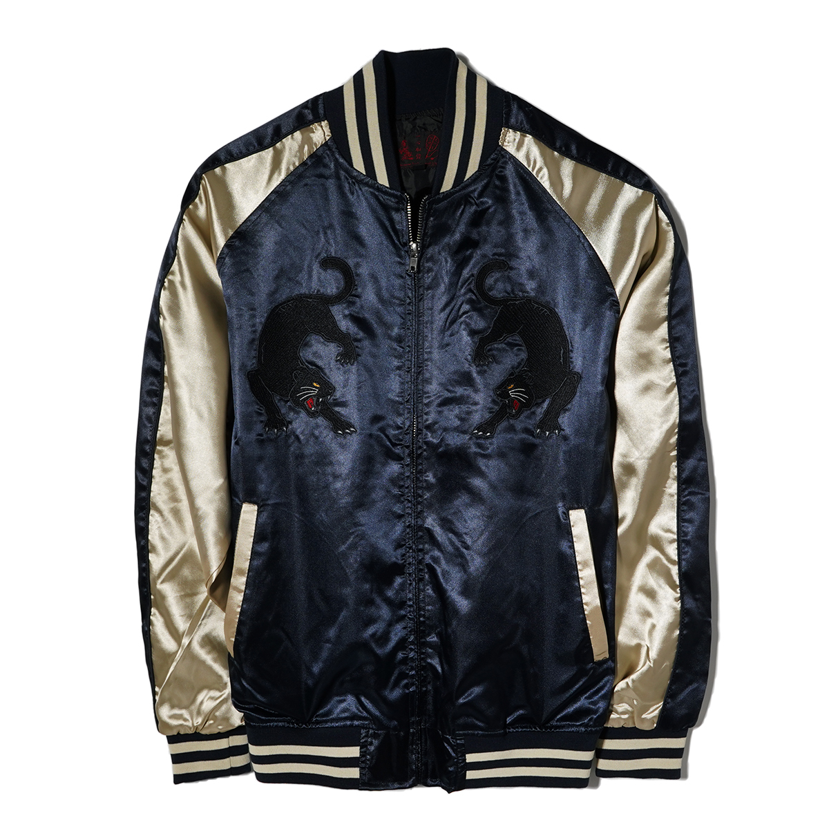 さらりと羽織れるストリート定番スカジャン。 程よい厚さとサラッとした高級感のあるサテン生地、 フロントとバックに施された丁寧な刺繍使いがポイントで、アメカジでは定番のスカジャンを現代っぽくタイトなサイズ感に。 ボディはカラー配色切り替えで仕上げた大人っぽさのあるデザインなど凝ったディティール。 これからの時期に最適、ライトアウターとして活躍してくれる1着。 左胸内側裏ポケットあり、中綿ナシ。 【カラー◆Color】 黒豹 / NAVY 【サイズ◆Size】 S 【寸法◆Size】 S size : 身幅51cm 肩幅(ラグランにより数値なし) 着丈59cm 裄丈80cm M size : 身幅53cm 肩幅(ラグランにより数値なし) 着丈61cm 裄丈82cm L size : 身幅55cm 肩幅(ラグランにより数値なし) 着丈63cm 裄丈84cm XL size : 身幅57cm 肩幅(ラグランにより数値なし) 着丈65cm 裄丈86cm 【素材◆Material】 ポリエステル 100% ※現物に近いカラーに撮影しておりますがモニターカラー設定、または印象によりカラー誤差があることをご理解よろしくお願い致します。 | ||
