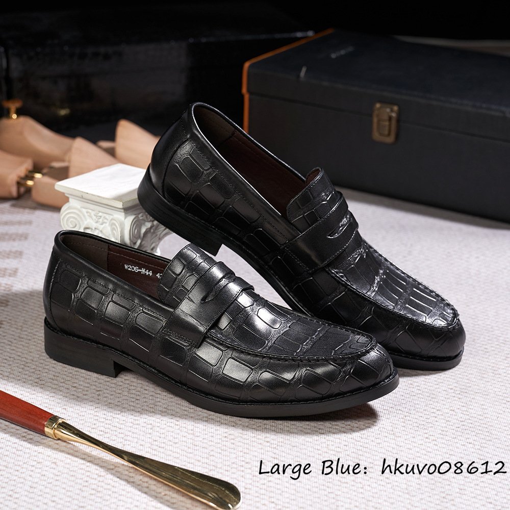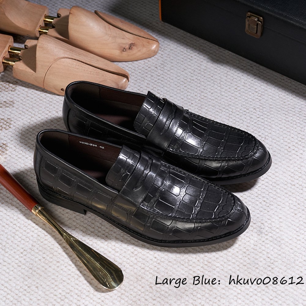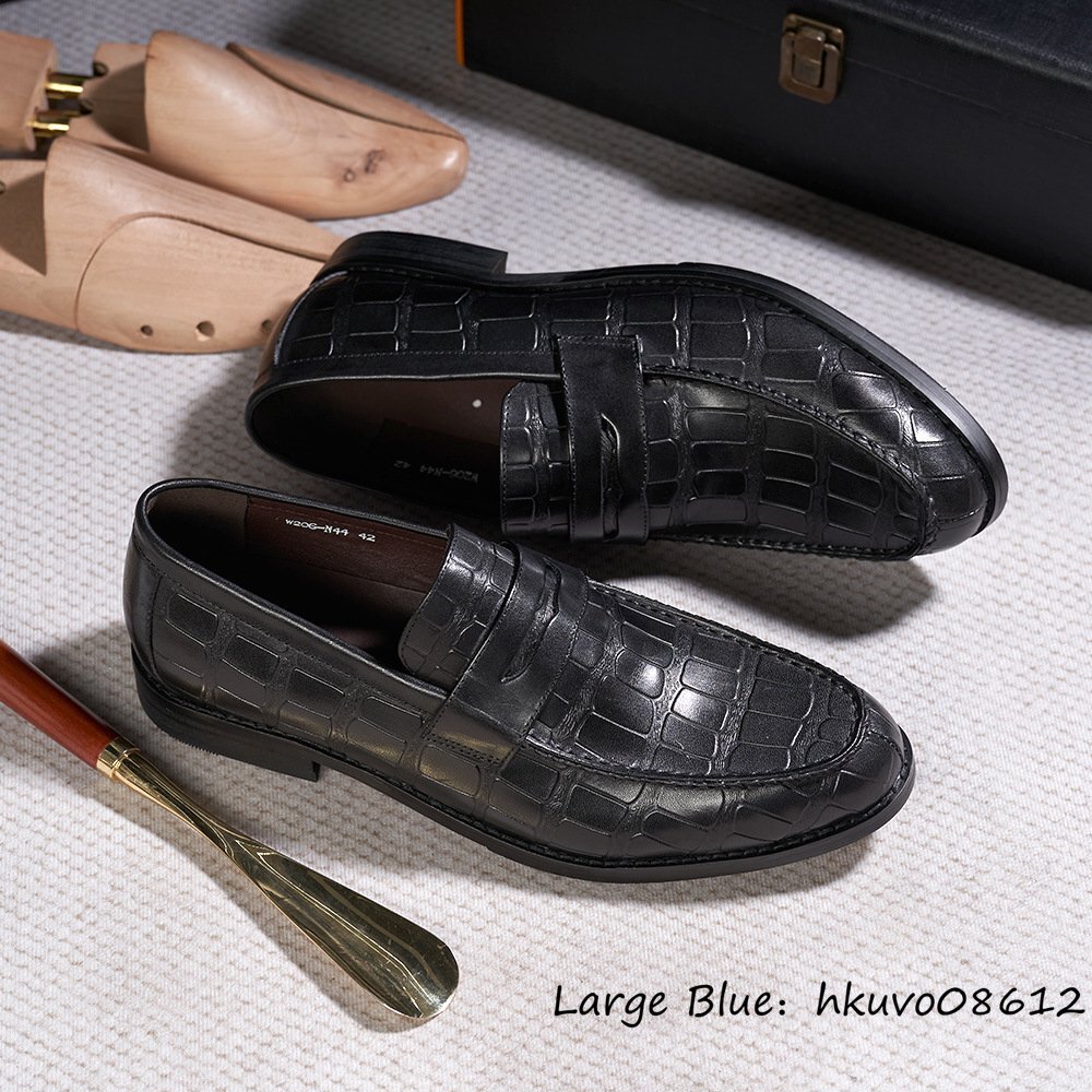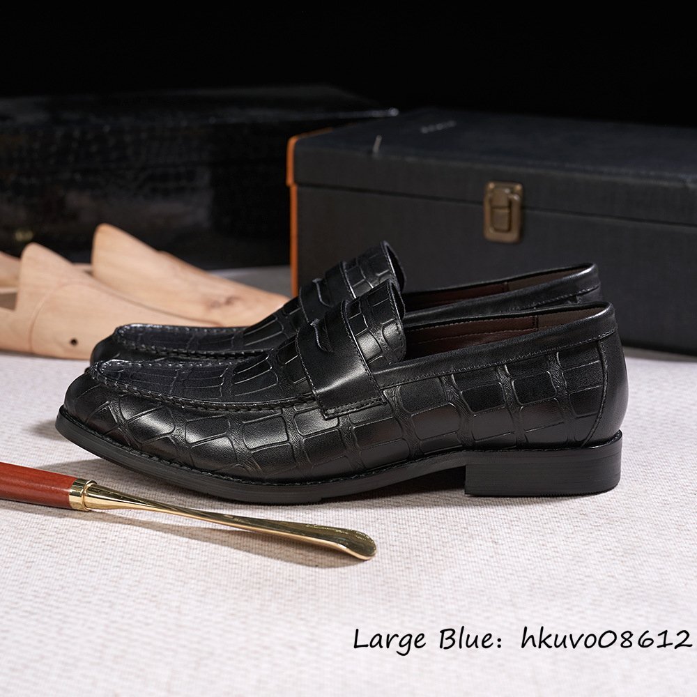 超美品■定価9万 ローファー メンズ 本革 ビジネスシューズ 職人手作り 鰐柄 ドライビング レザーシューズ 高級牛革 紳士靴 革靴 黒 25.0cm