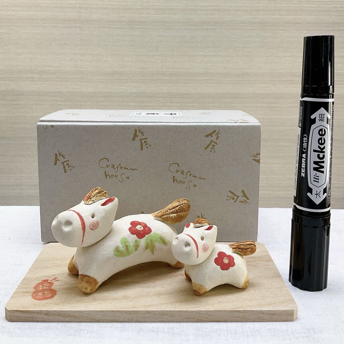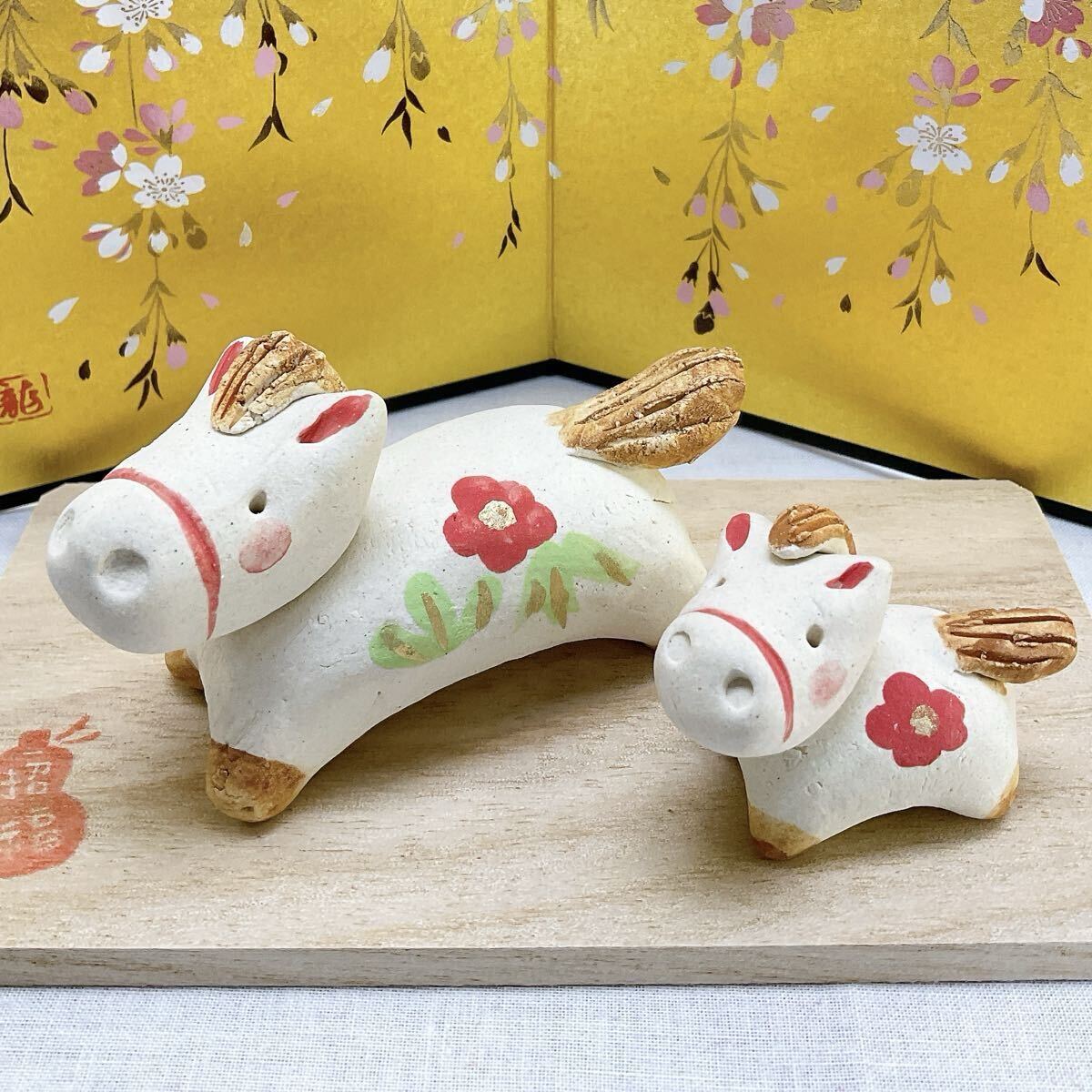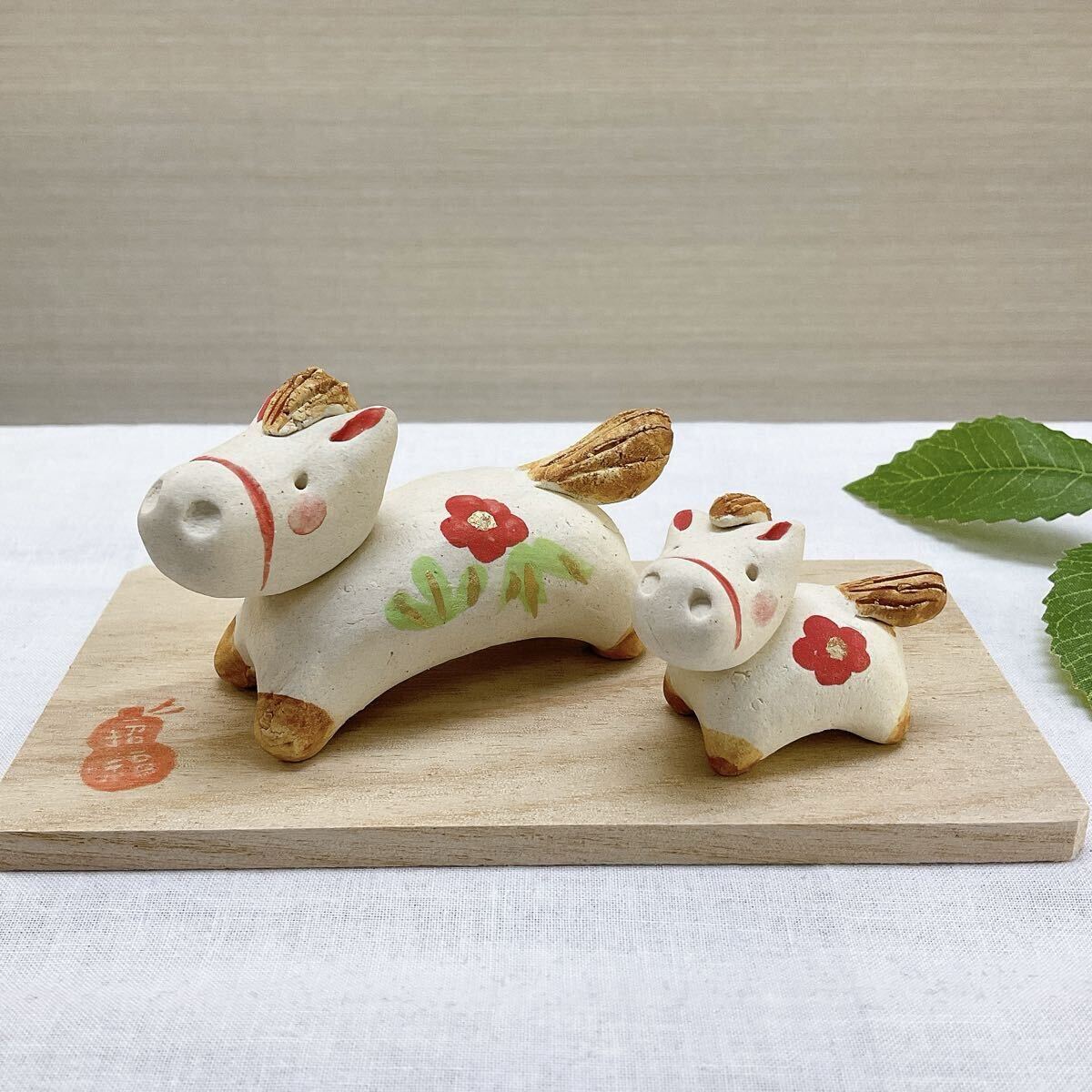 陶器製 干支飾り 【 ほのぼの午飾り 親子午】新品、未使用品 写真画像2枚目 デザインのお品をお届けします。