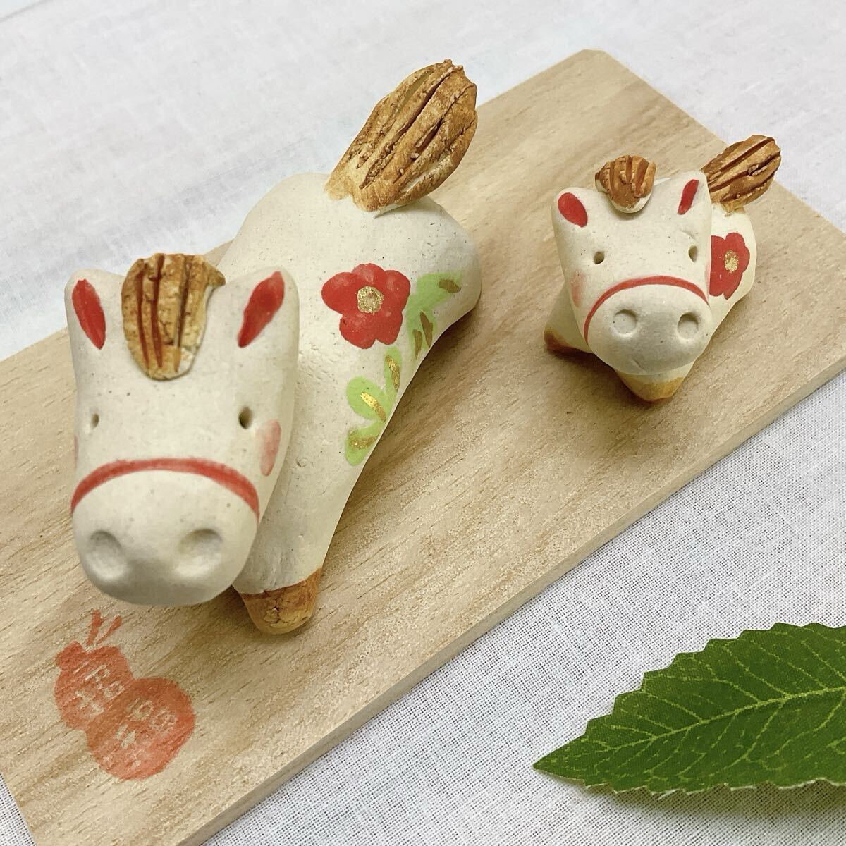 ほのぼのとした土の温もりと、どこか懐かしい表情の陶器の午飾り。