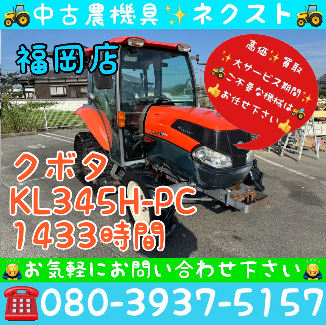 | クボタ KL345H-PC パワステ 逆転 倍速 AD 水平 旋回 バックアップ ポンパ エアコン キャビン 1433時間 トラクター 福岡発 | |
