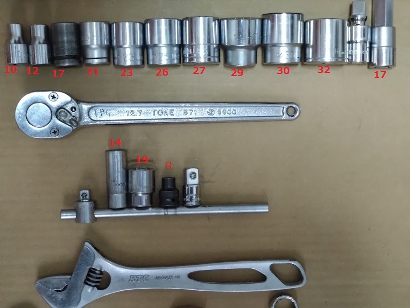スパナやボックスのサイズは画像内に記入してますので確認してください。